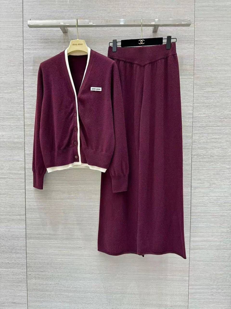 Женский костюм MIU MIU бордового цвета – воплощение премиум-класса! Идеальный кардиган с плиссированной юбкой для тех, кто ценит элегантность и безупречный стиль MIU MIU.