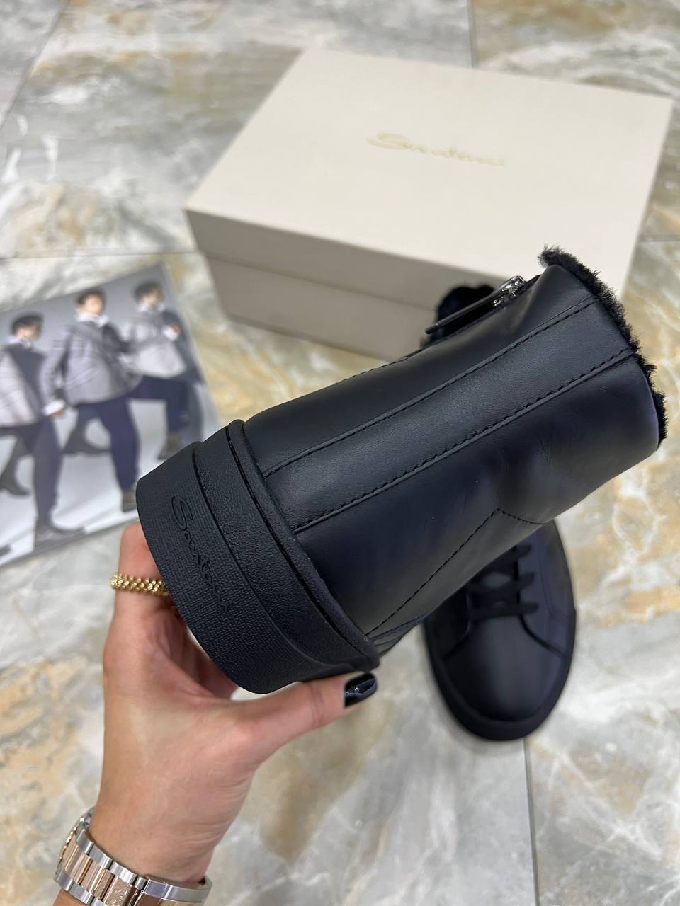 Santoni: безупречный стиль для уверенного мужчины. Классические черные кеды с высоким голенищем – идеальный выбор. Ощутите роскошь и комфорт с этой деталью в стиле люкс. Мужские черные кеды Santoni.
