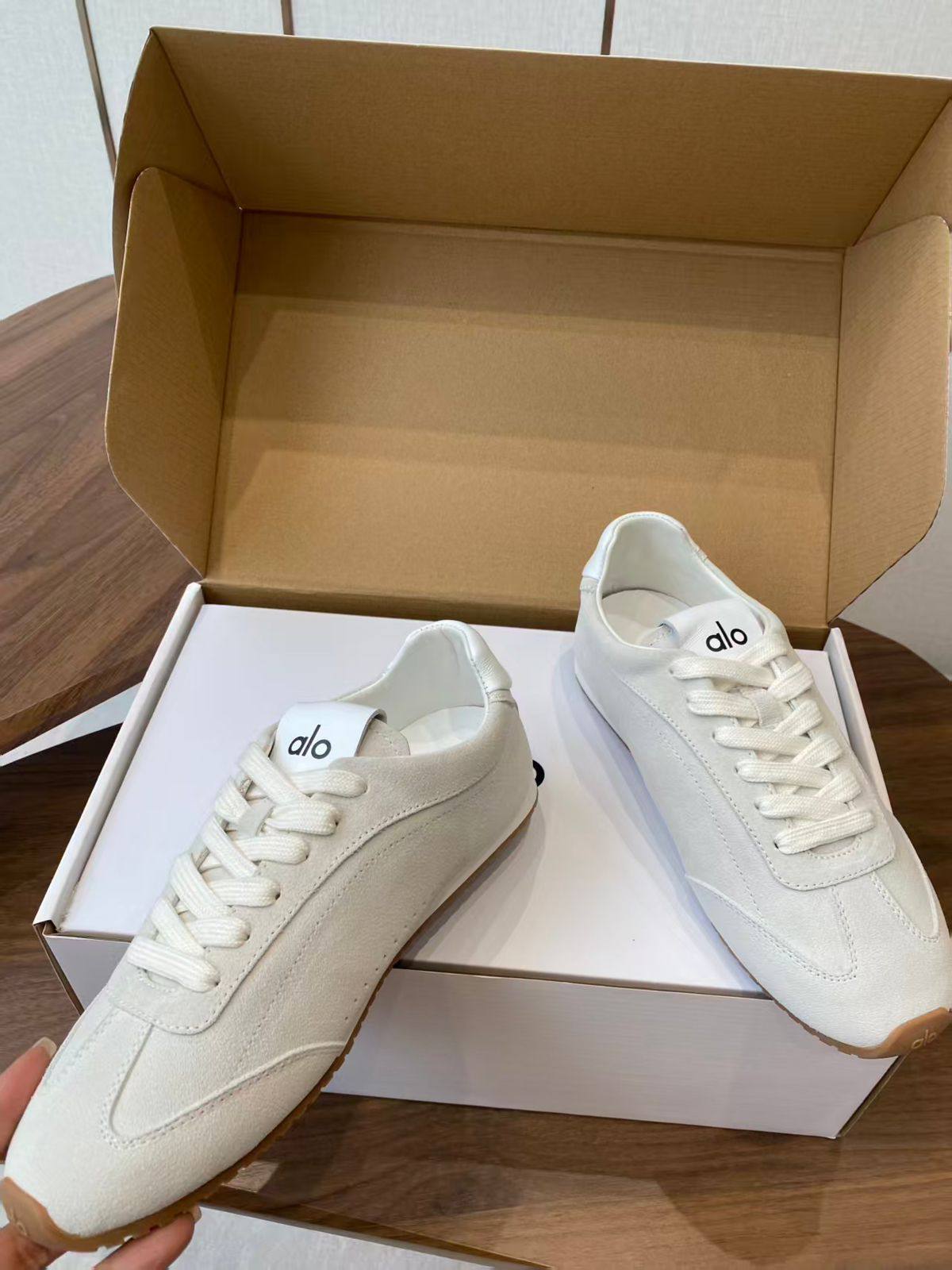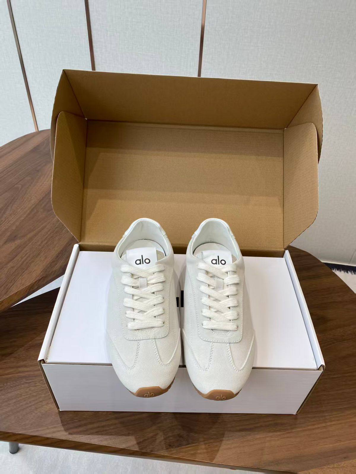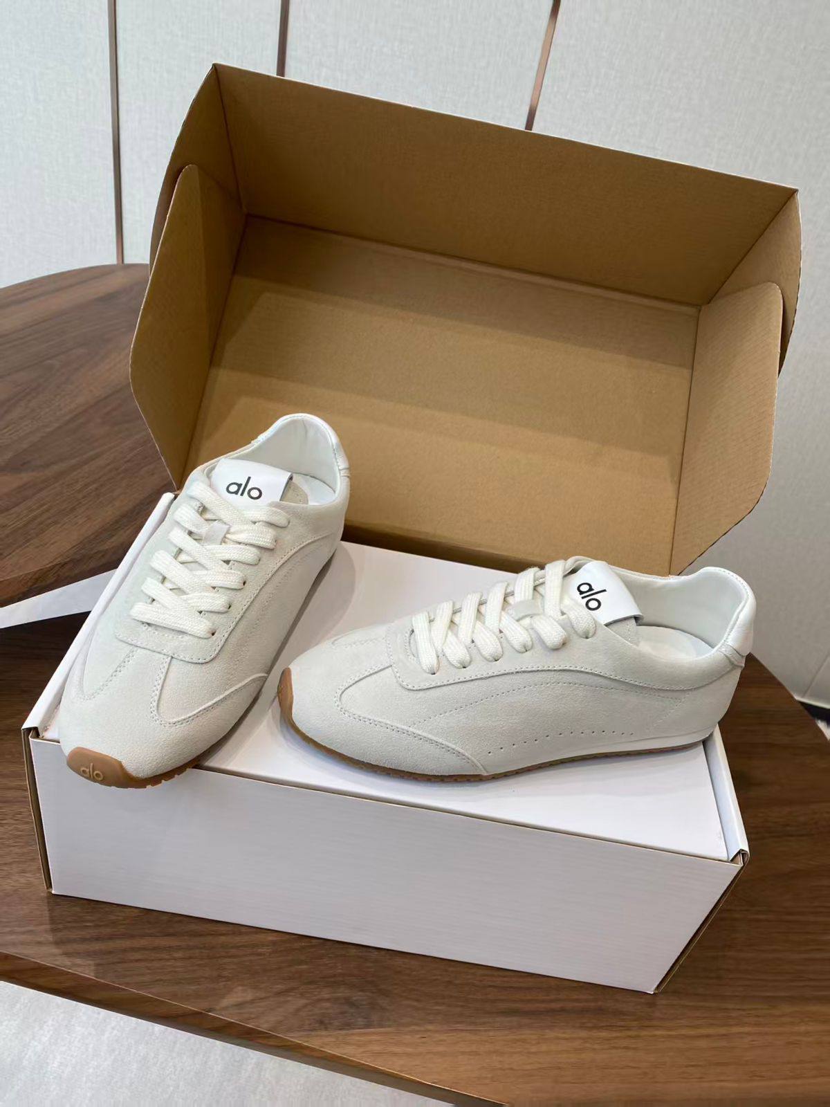 Alo Женские бежевые кроссовки – воплощение гламура и ретро-стиля. Идеальный выбор для тех, кто ценит комфорт и безупречный внешний вид.