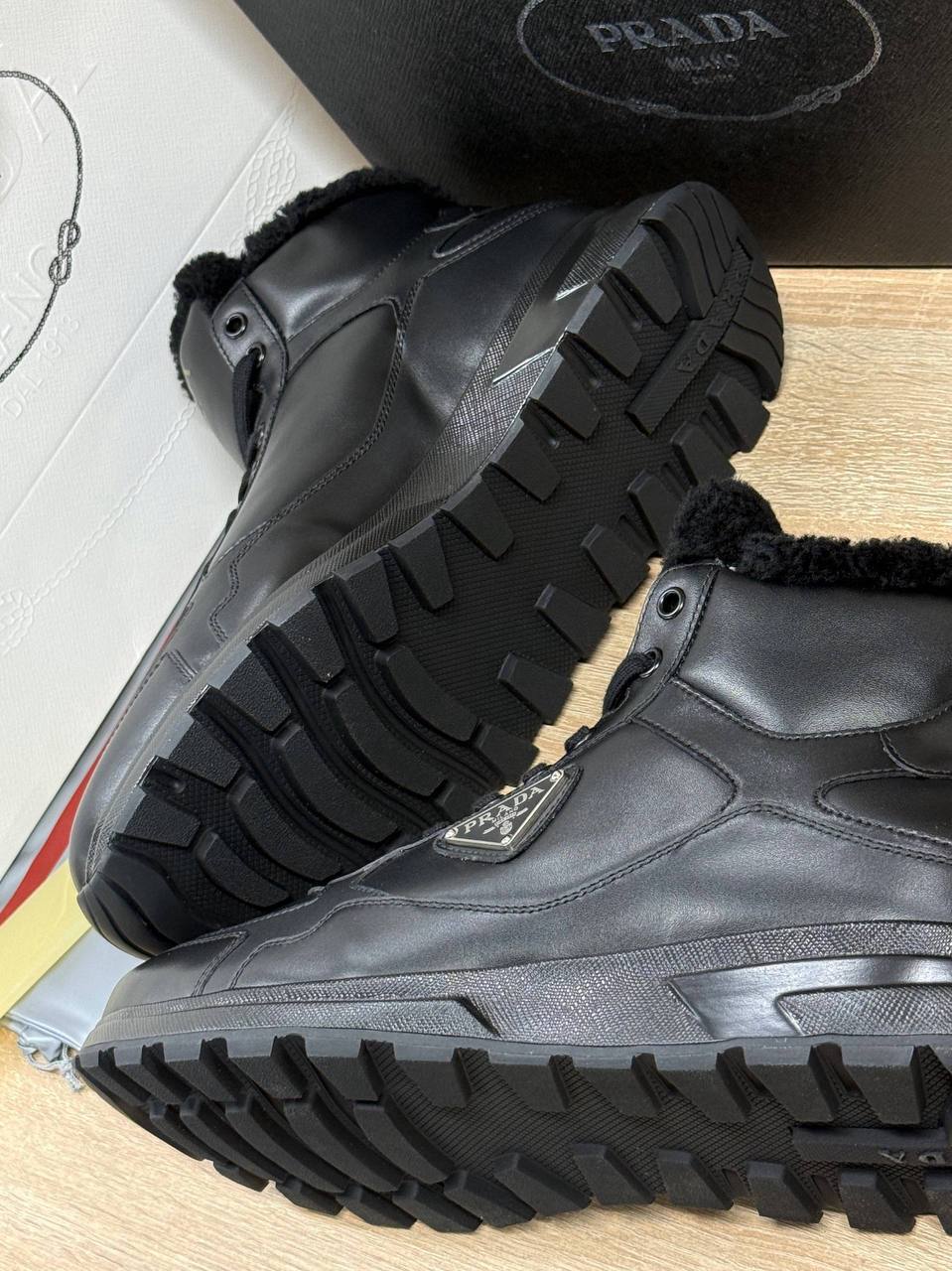 Мужские Prada черные кроссовки – воплощение лаконичного шика. Идеальный выбор для тех, кто ценит качество и безупречный стиль. Натуральная кожа и замша, массивная белая подошва, комфорт и узнаваемый бренд.