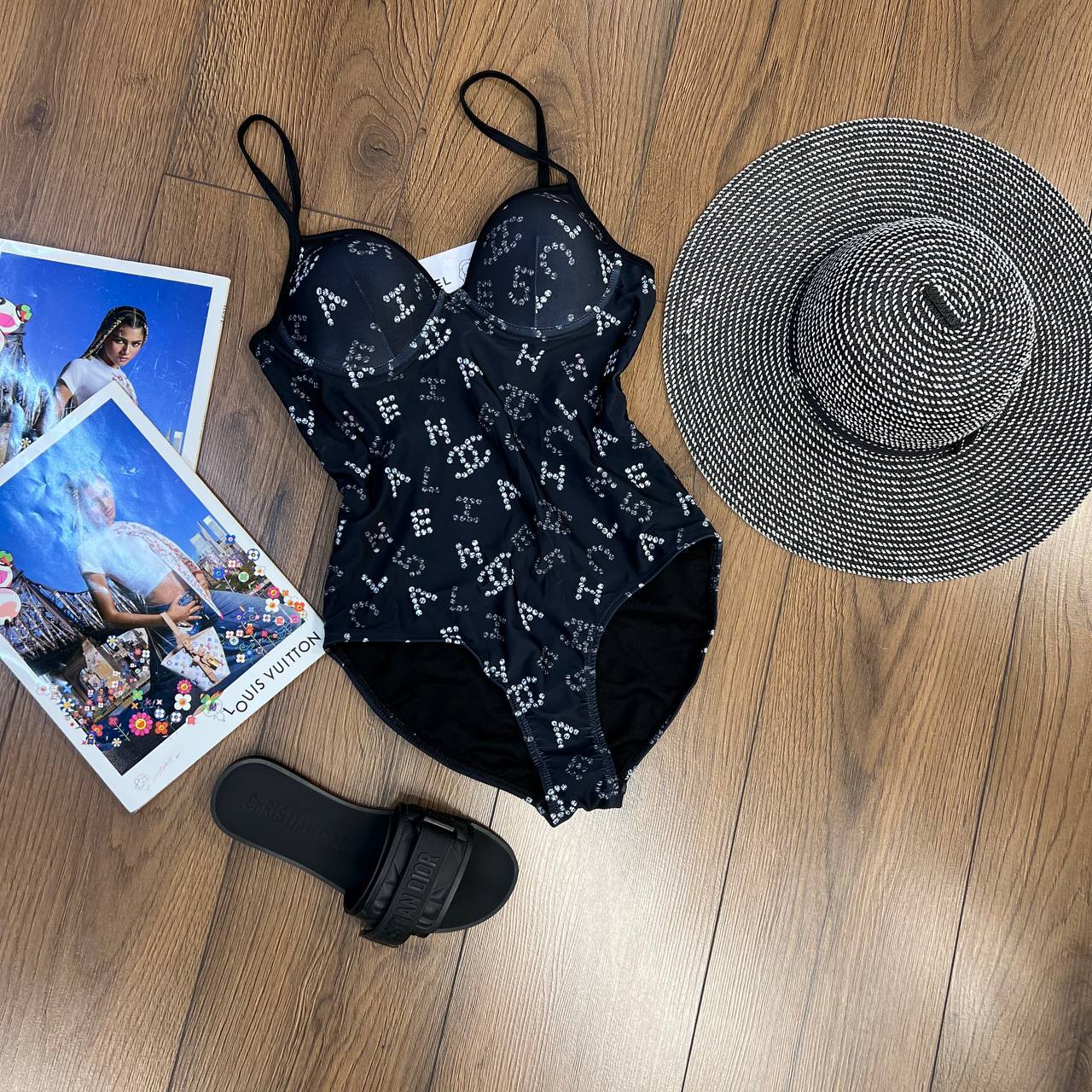 Женский купальник CHANEL чёрный для стильной и роскошной женщины