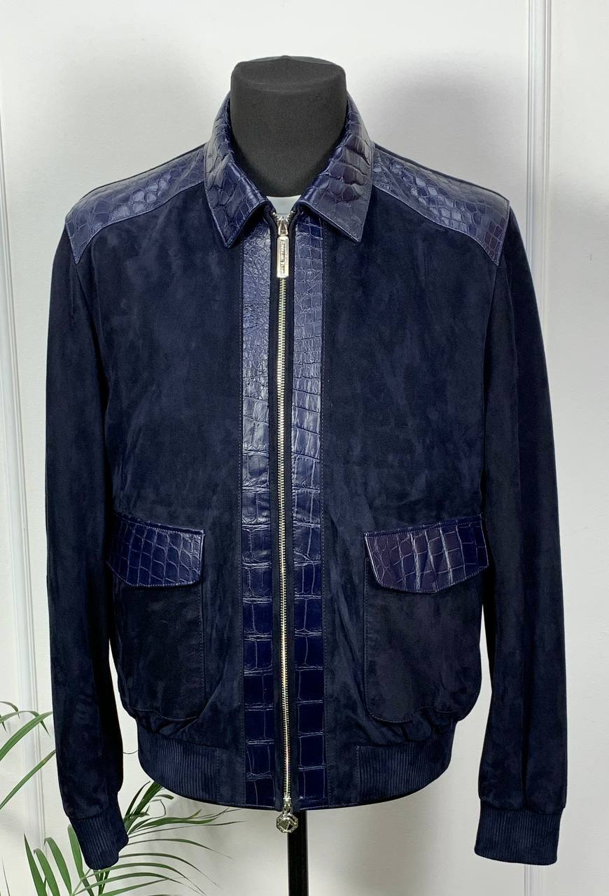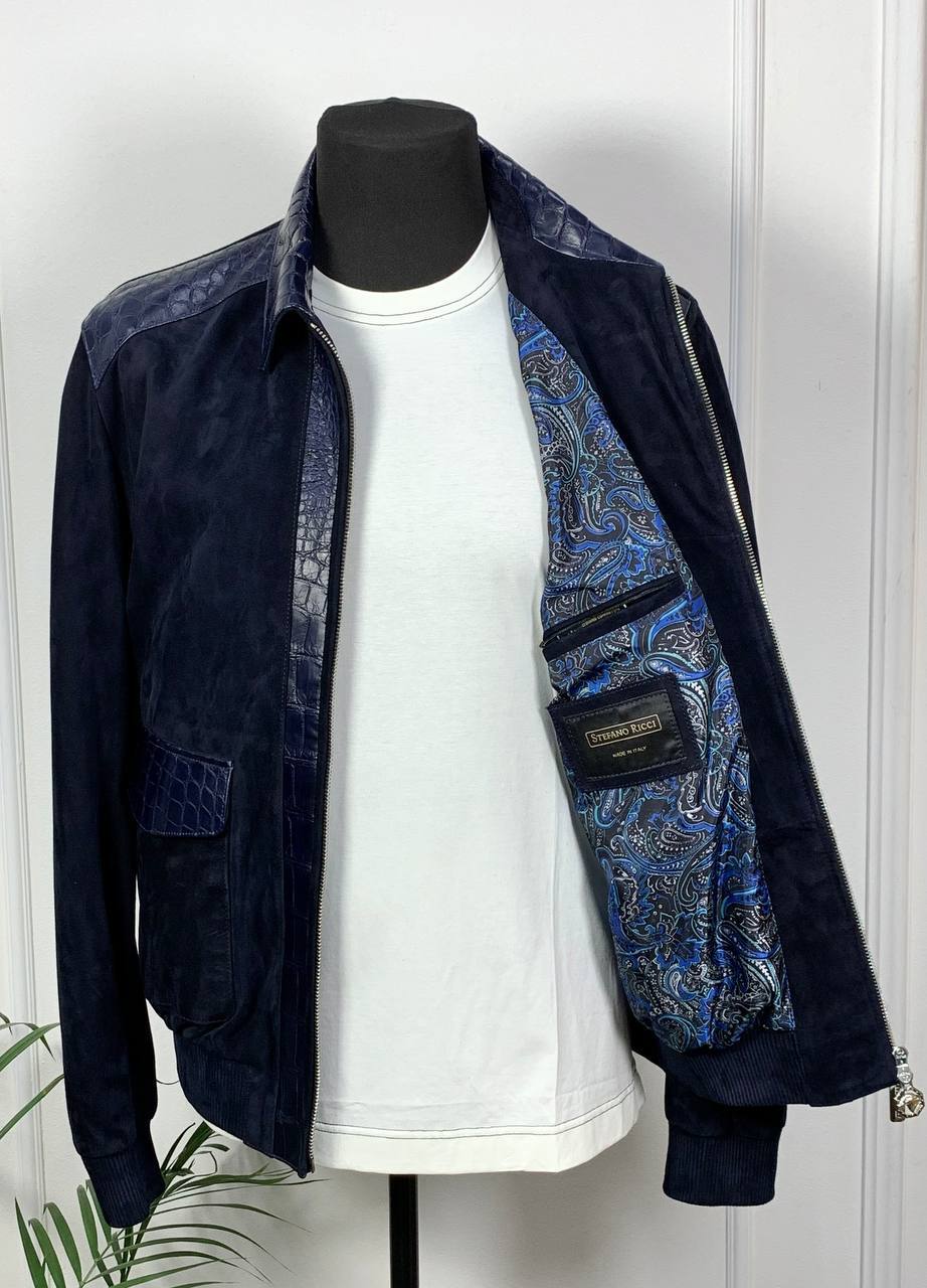 Для мужчин с эксклюзивным вкусом - мужская куртка Stefano Ricci с вставкой кожи крокодила синего цвета, символ высшего комфорта и стиля премиум-класса.