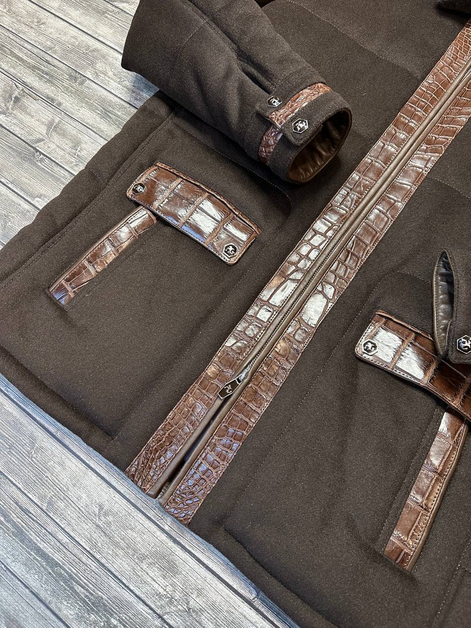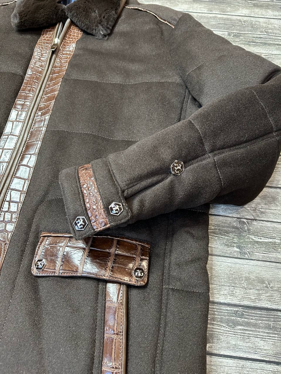 Восхитительная мужская куртка Angelo Galasso с коричневой кожей крокодила - элегантное решение для мужчин с чувством стиля и вкусом.