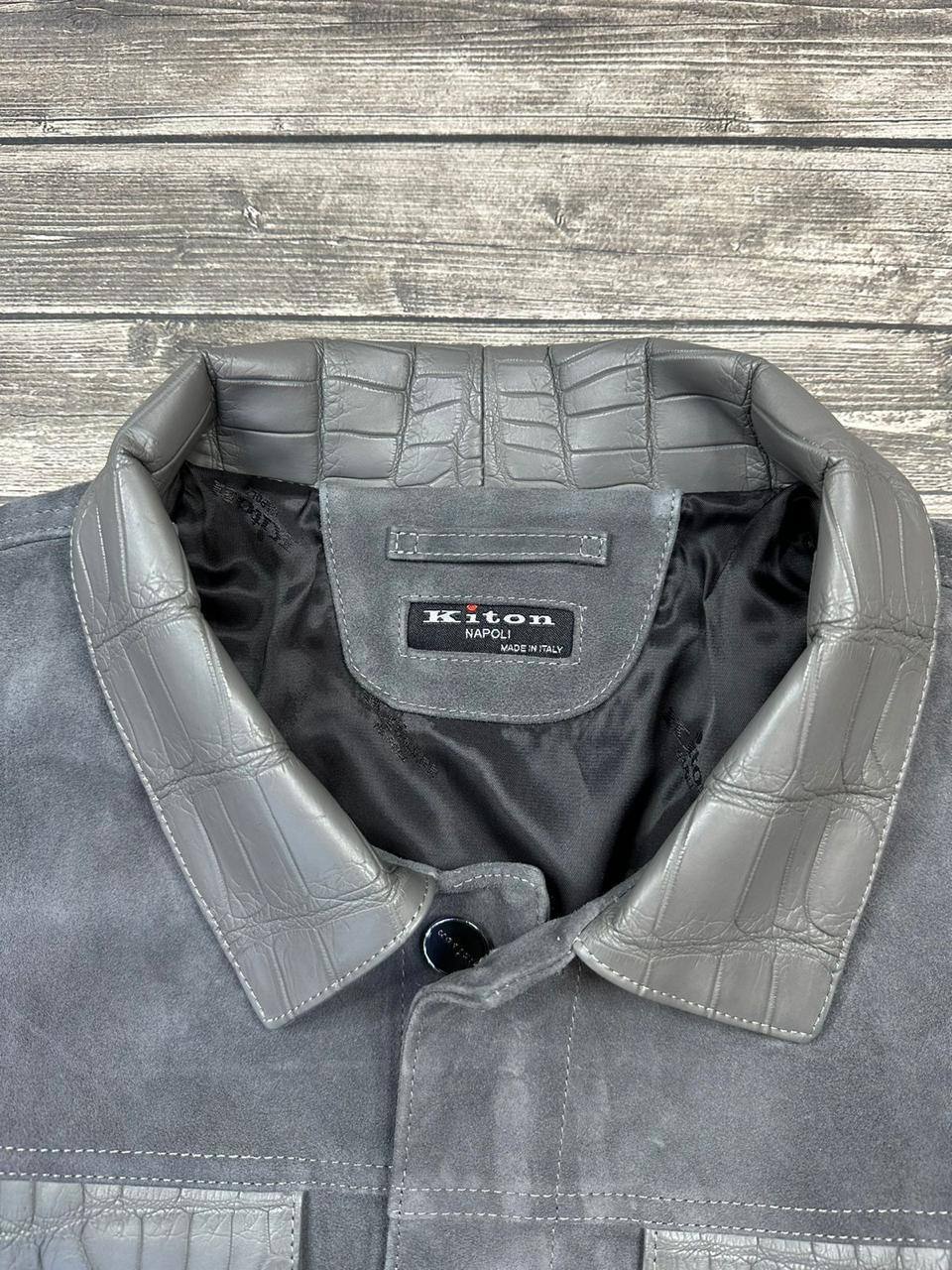Мужская куртка Kiton с эксклюзивной вставкой кожи крокодила серый цвет.