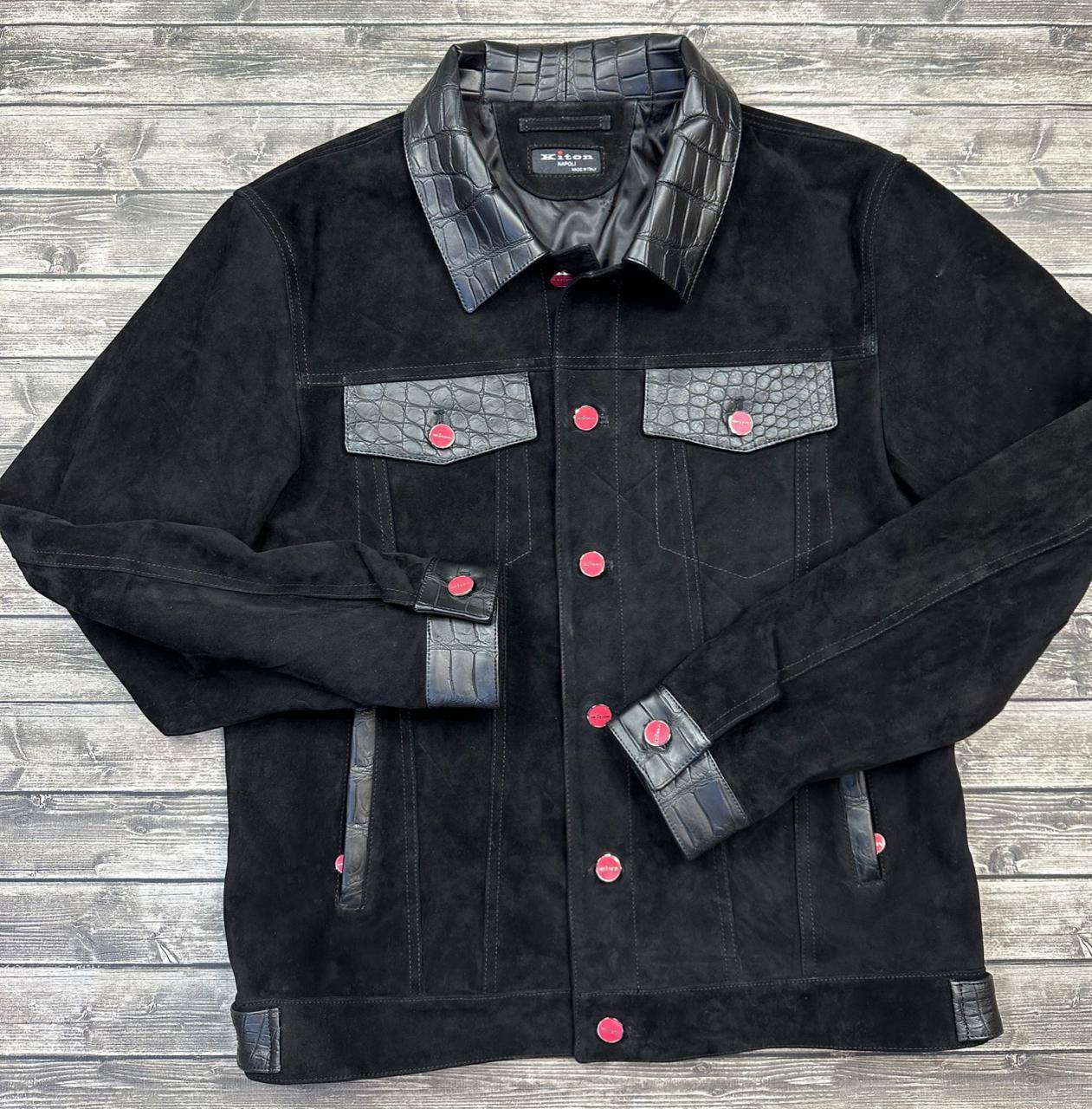 Мужская куртка Kiton с эксклюзивными вставками из кожи крокодила, черный цвет, классика люкс для настоящего гурмана.