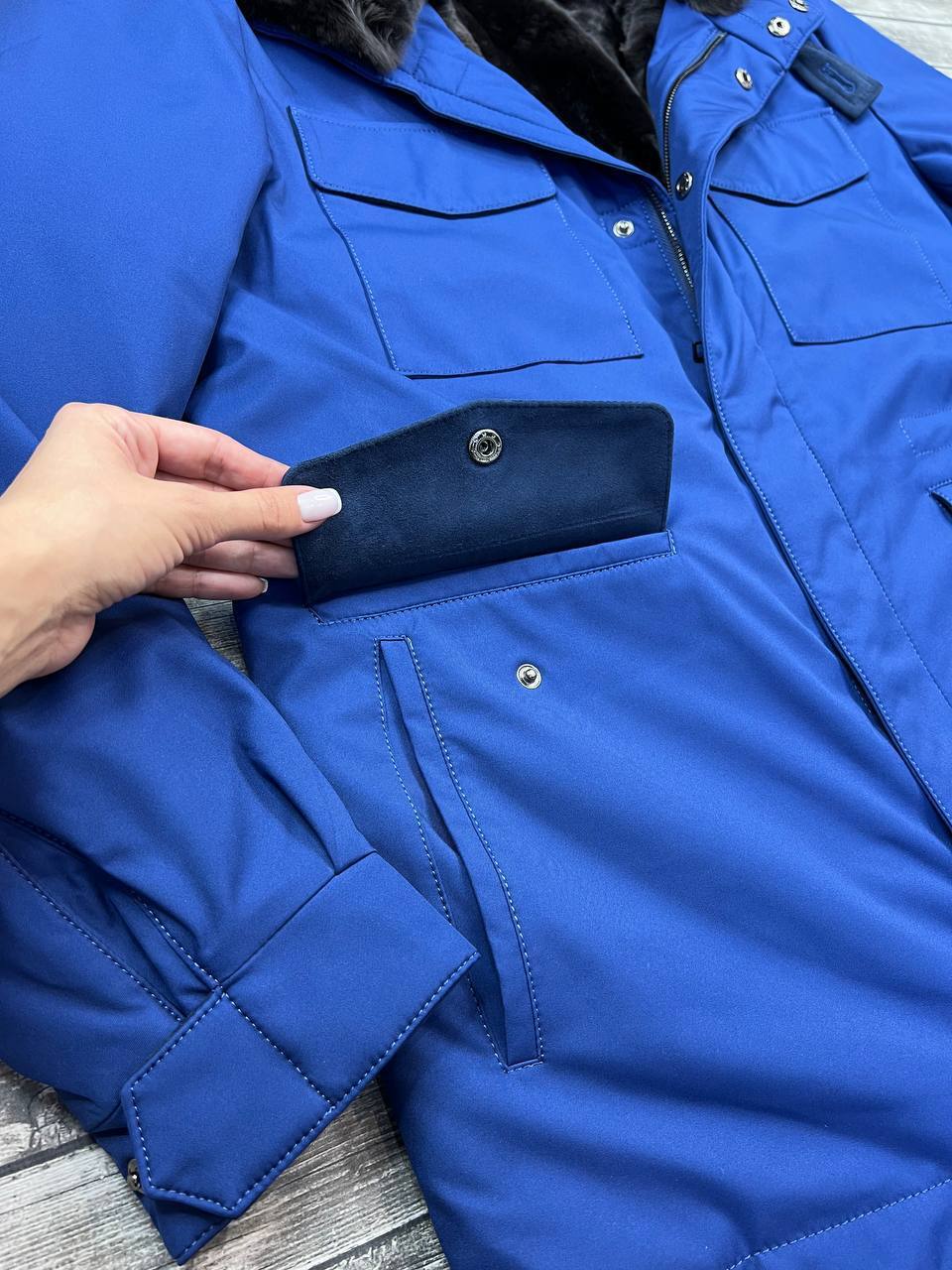 Почувствуй роскошь Loro Piana! Женская куртка Синий из плотного вельвета – идеальный оверсайз для уверенных в себе женщин. Скидка в день рождения – особенный подарок себе.
