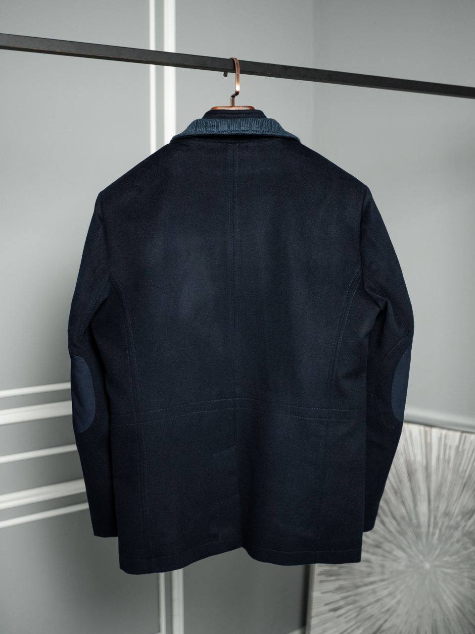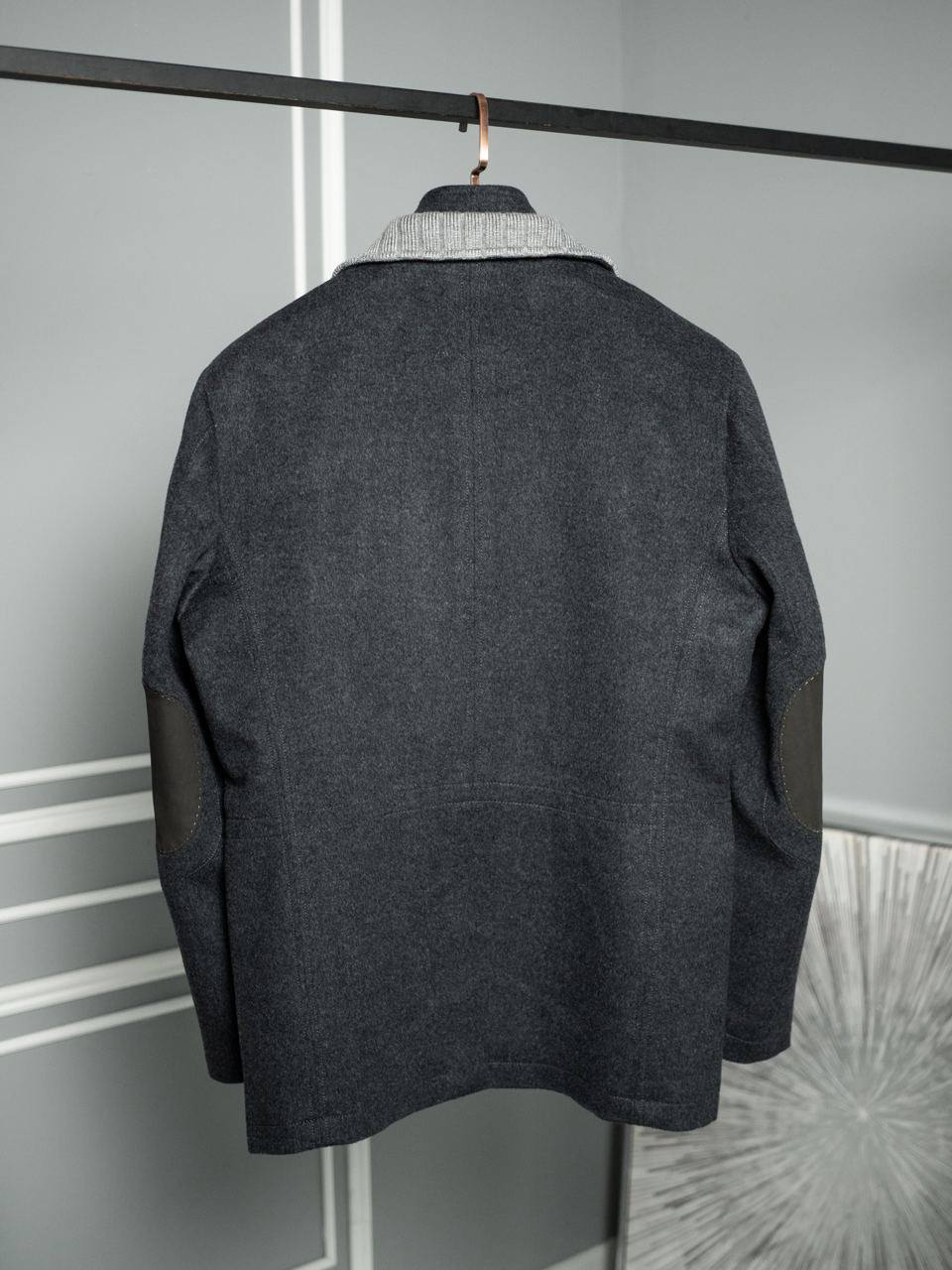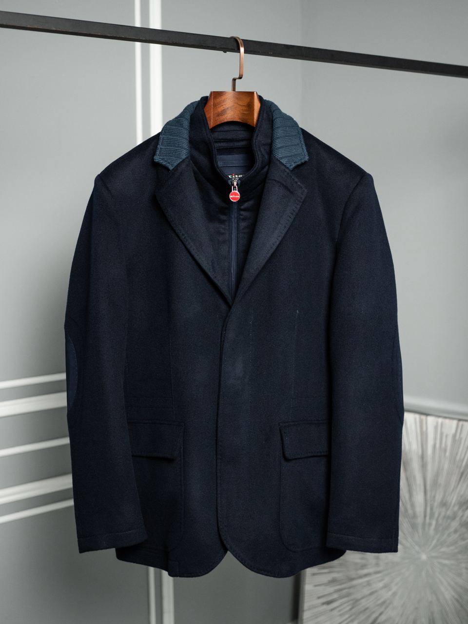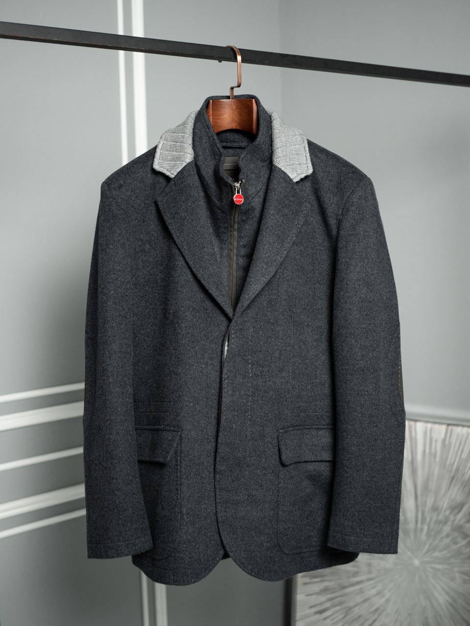 Мужская Kiton синяя куртка-пиджак – часть эксклюзивной коллекции. Плотная фланель, классический крой и акцентный синий воротник придают уверенности и стиля вашему образу.
