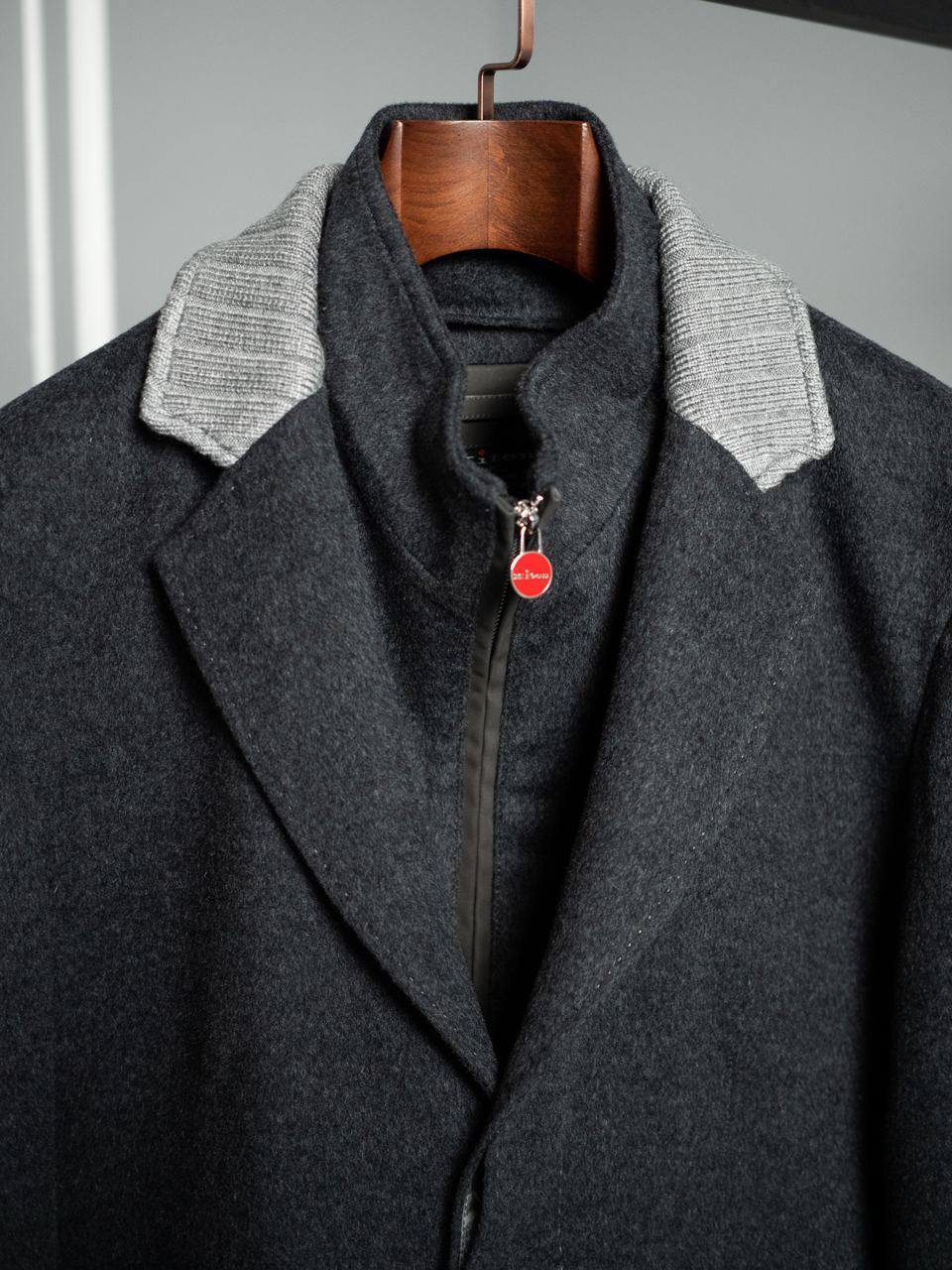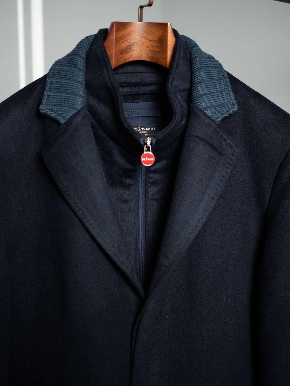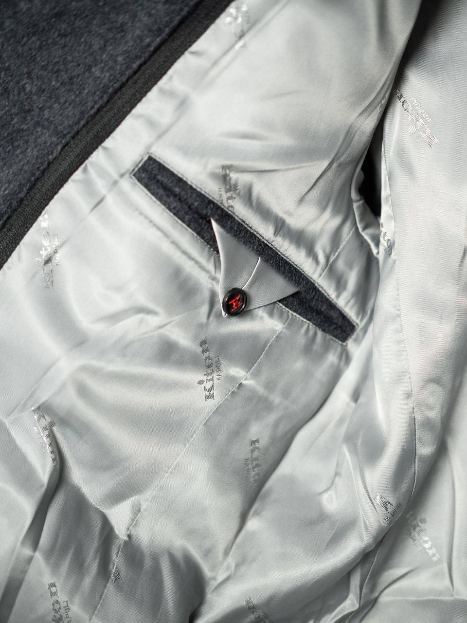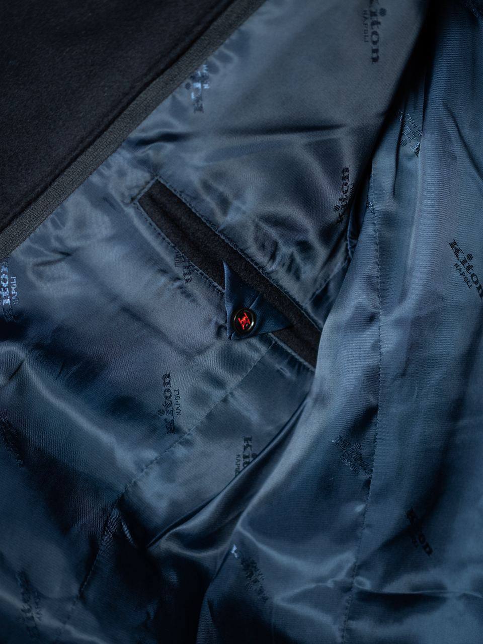 Мужская Kiton синяя куртка-пиджак – часть эксклюзивной коллекции. Плотная фланель, классический крой и акцентный синий воротник придают уверенности и стиля вашему образу.