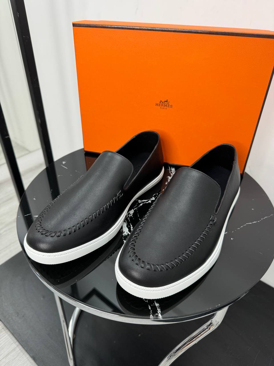 Мужская лофера Hermes чёрная - уникальный штрих для тех, кто ценит классический стиль и элегантную эстетику.