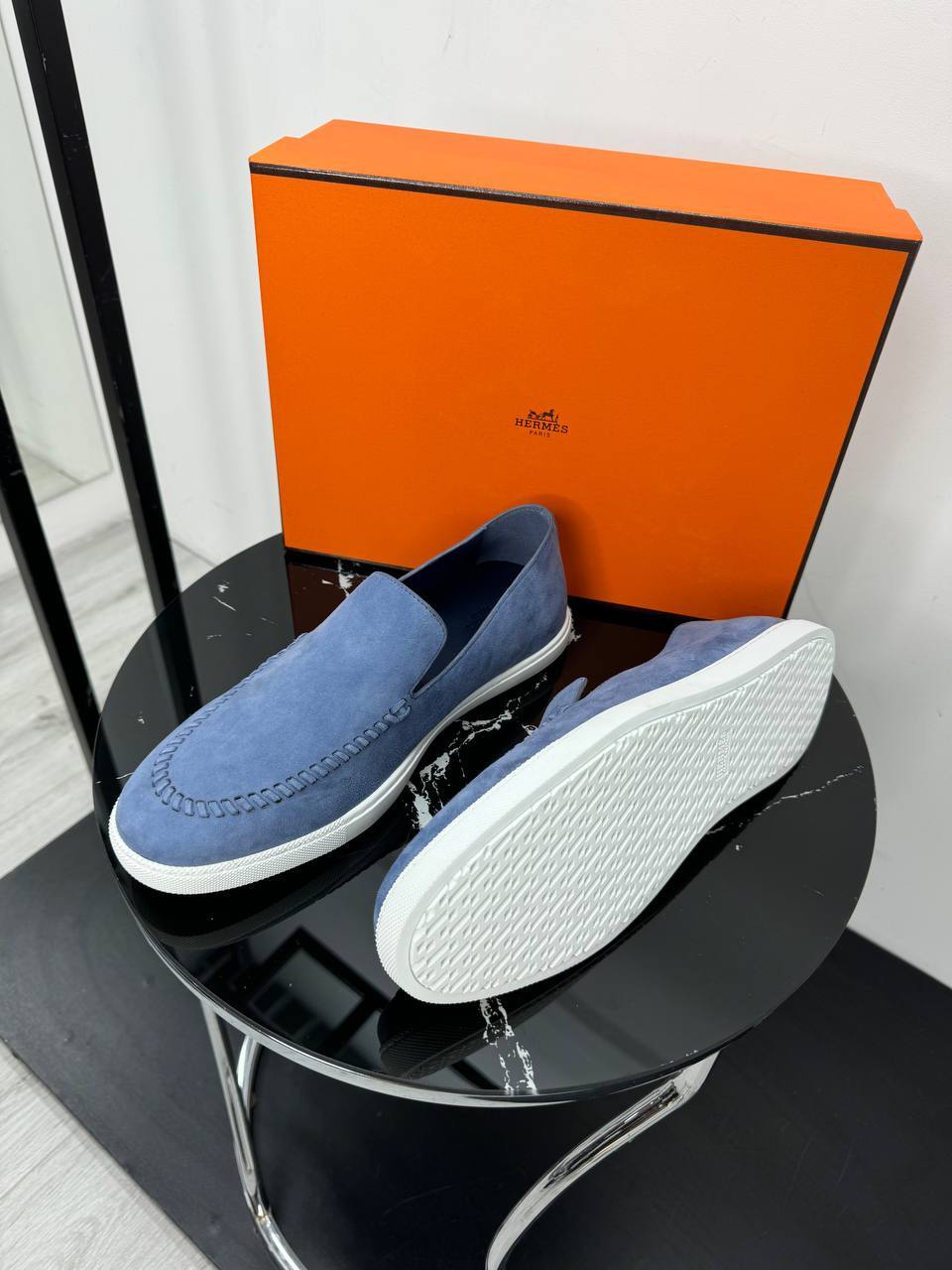 Мужская лофера Hermès голубой - для гурманов с чувством стиля и любителей классического лаконичного шика.