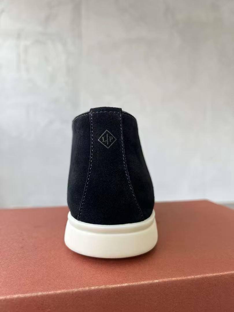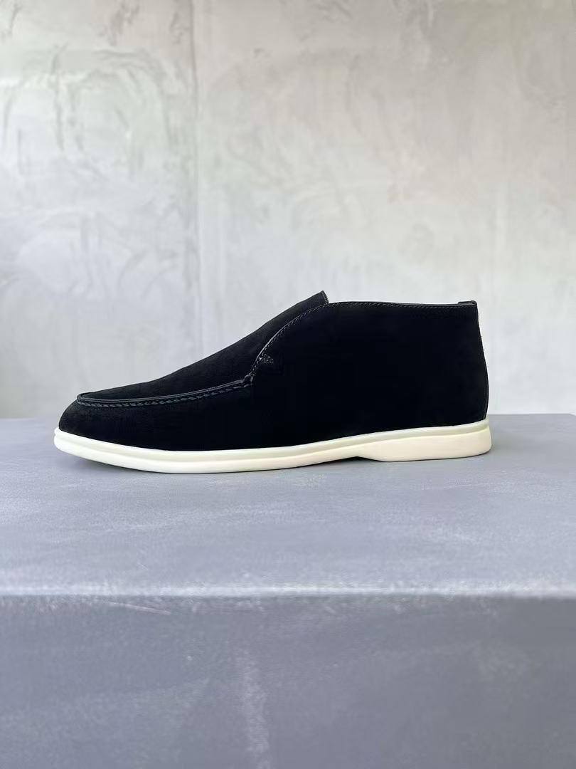 Мужские черные лоферы Loro Piana – воплощение премиум-качества. Мягкая замша, классический силуэт и безупречный комфорт для создания элегантного образа.