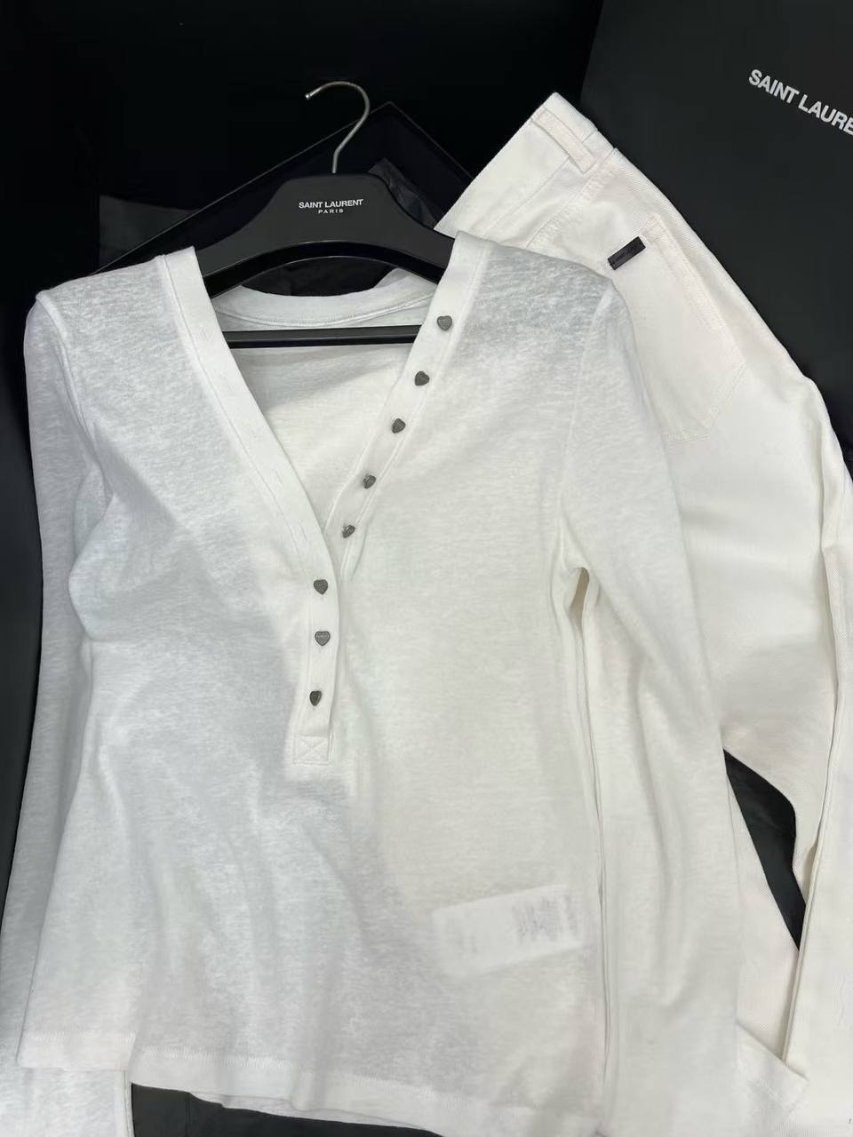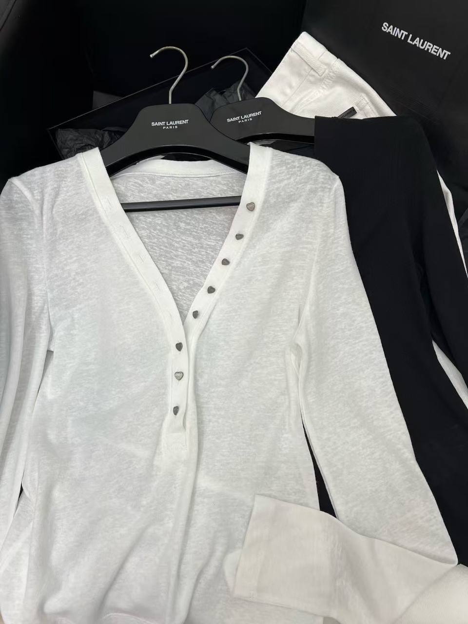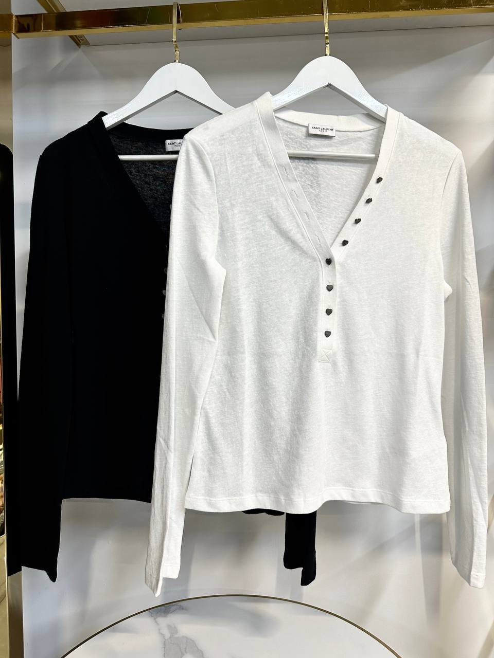 Для элегантных женщин - белая женская Лонгслив от Yves Saint Laurent в черном, идеальный акцент на вашем стиле.