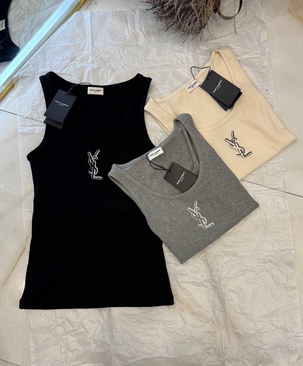 Белая красота женской моды - Женская майка Yves Saint Laurent, классический стиль для утонченных дам