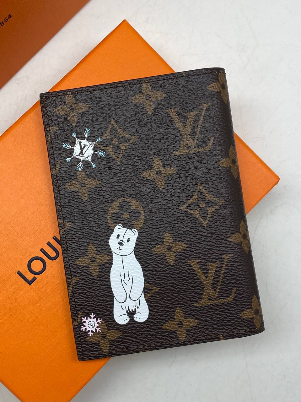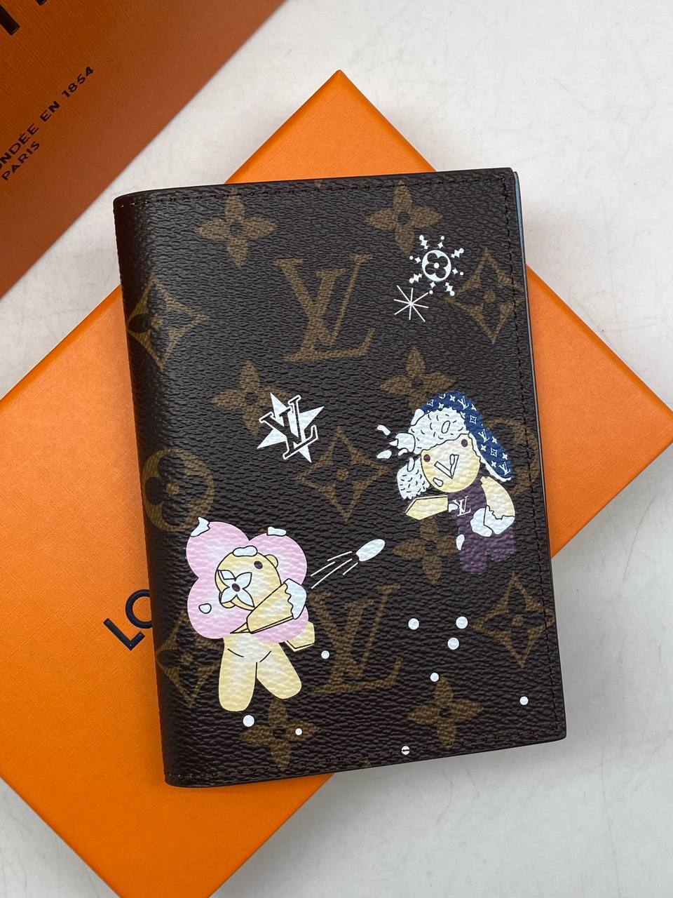 Элегантное дополнение для вашей премьерной коллекции: коричневая женская обложка на паспорт Louis Vuitton, размером 14х9,5 см - символизирующая высшую степень стиля и комфорта.