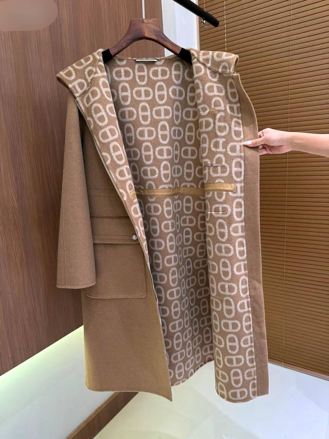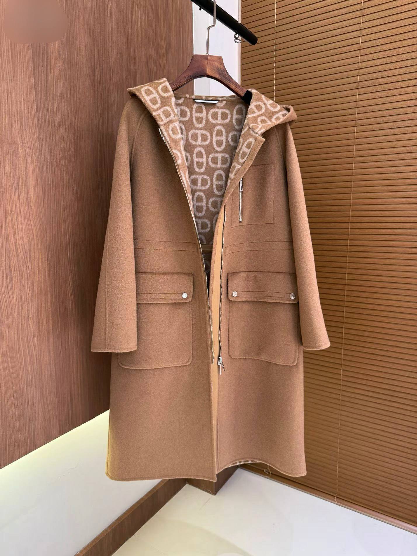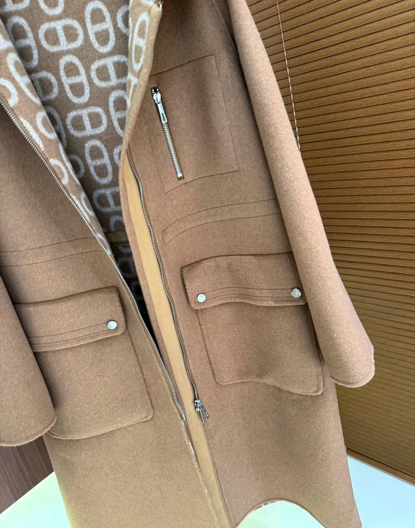 Ощутите роскошь с Hermes Женское коричневое пальто. Идеальный миди-крой, прямой силуэт и премиальное качество шерсти. Элегантный аксессуар для вашего безупречного стиля.