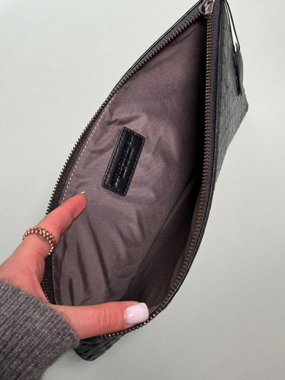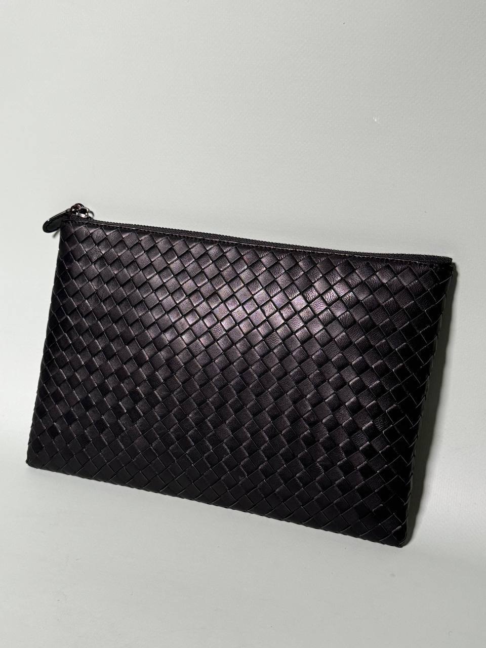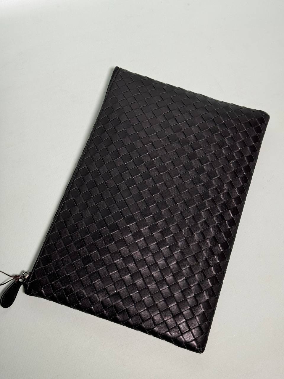 Чёрная мужская папка Bottega Veneta - символ элегантного стиля и высшего качества, идеальная для деловых встреч и повседневной жизни, размер 20х29х2 см.