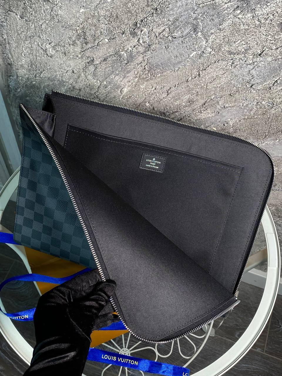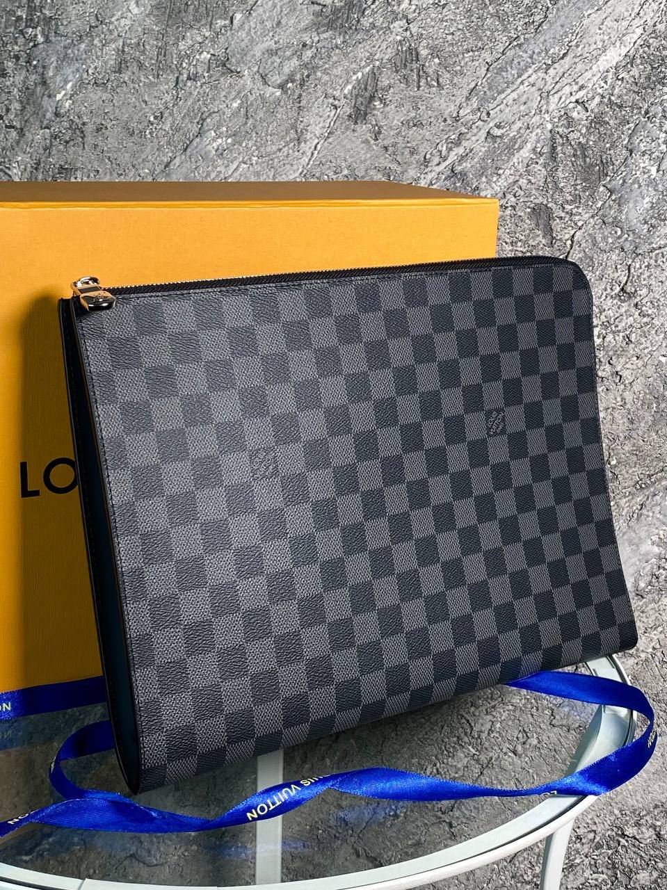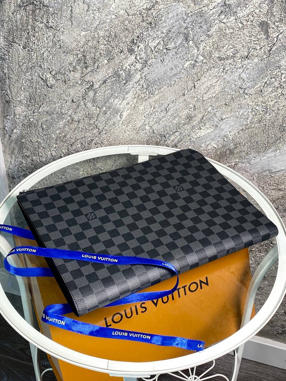 Эксклюзивная мужская папка Louis Vuitton серая, идеальный аксессуар для делового человека с чувством стиля и вкусом.