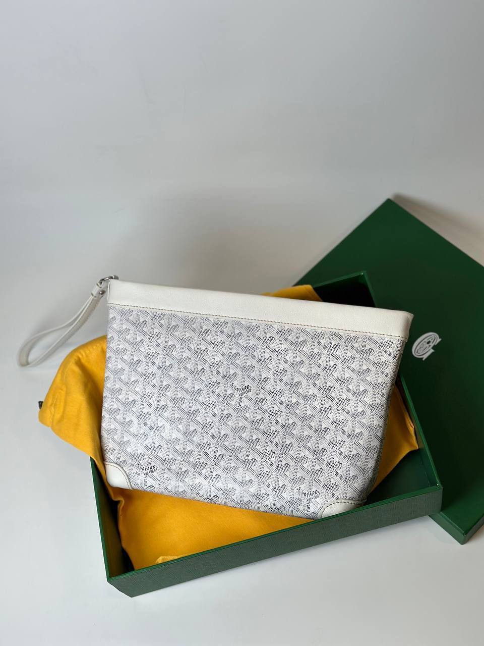 Для мужчины с чувством стиля и любящего роскошь - серая папка Goyard с серебряной отделкой.