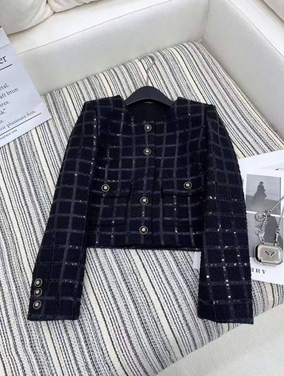 CHANEL Женский Чёрный пиджак – воплощение безупречного стиля и отличное качество. Классический силуэт, из плотной буклевы, подчеркнет вашу элегантность в деловом или вечернем образе.