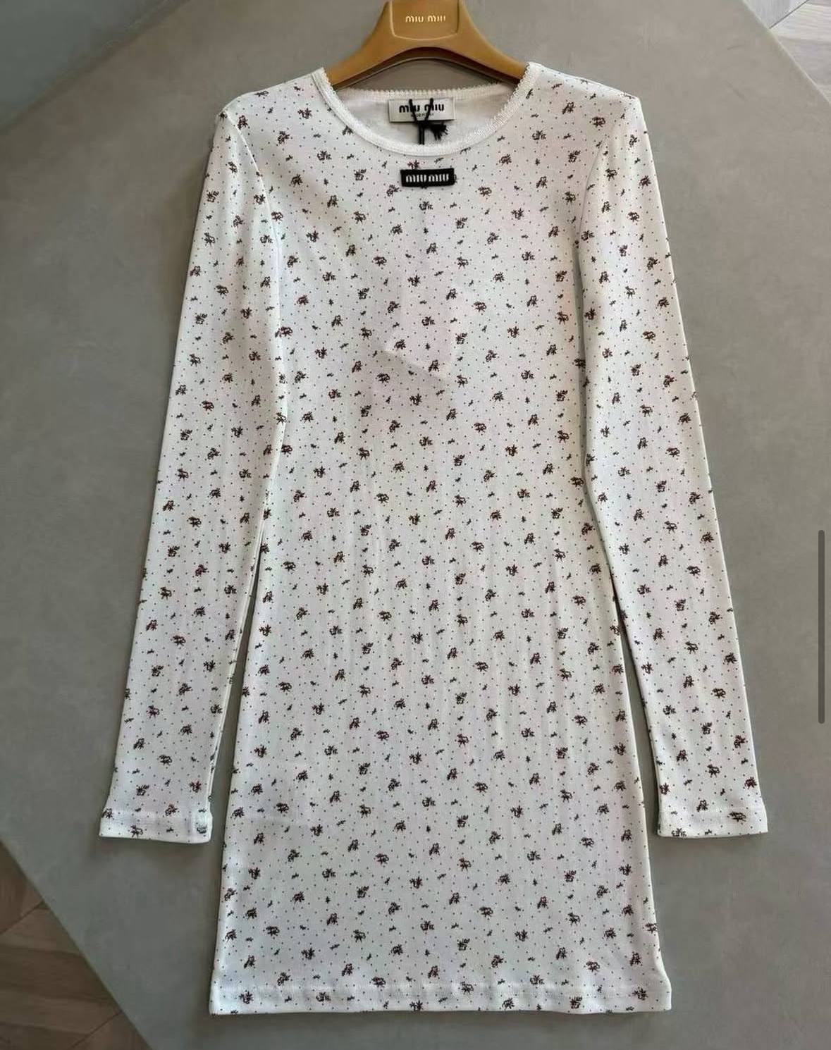 MIU MIU Женское Белое Платье – воплощение элегантности и вневременного стиля. Плотный трикотаж, приталенный силуэт и длинный рукав создают идеальный образ для тех, кто ценит безупречный вкус и элегантность.