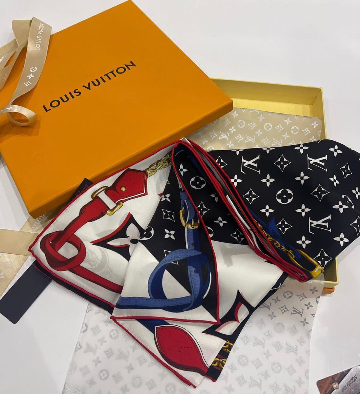 Изысканная женская элегантность от Louis Vuitton - черно-белый платок, размер 90х90 см.