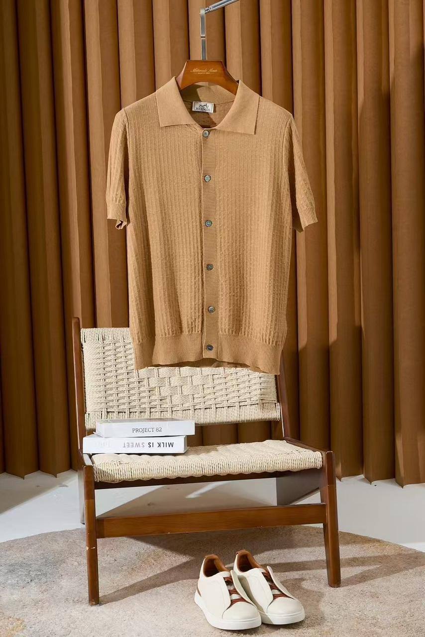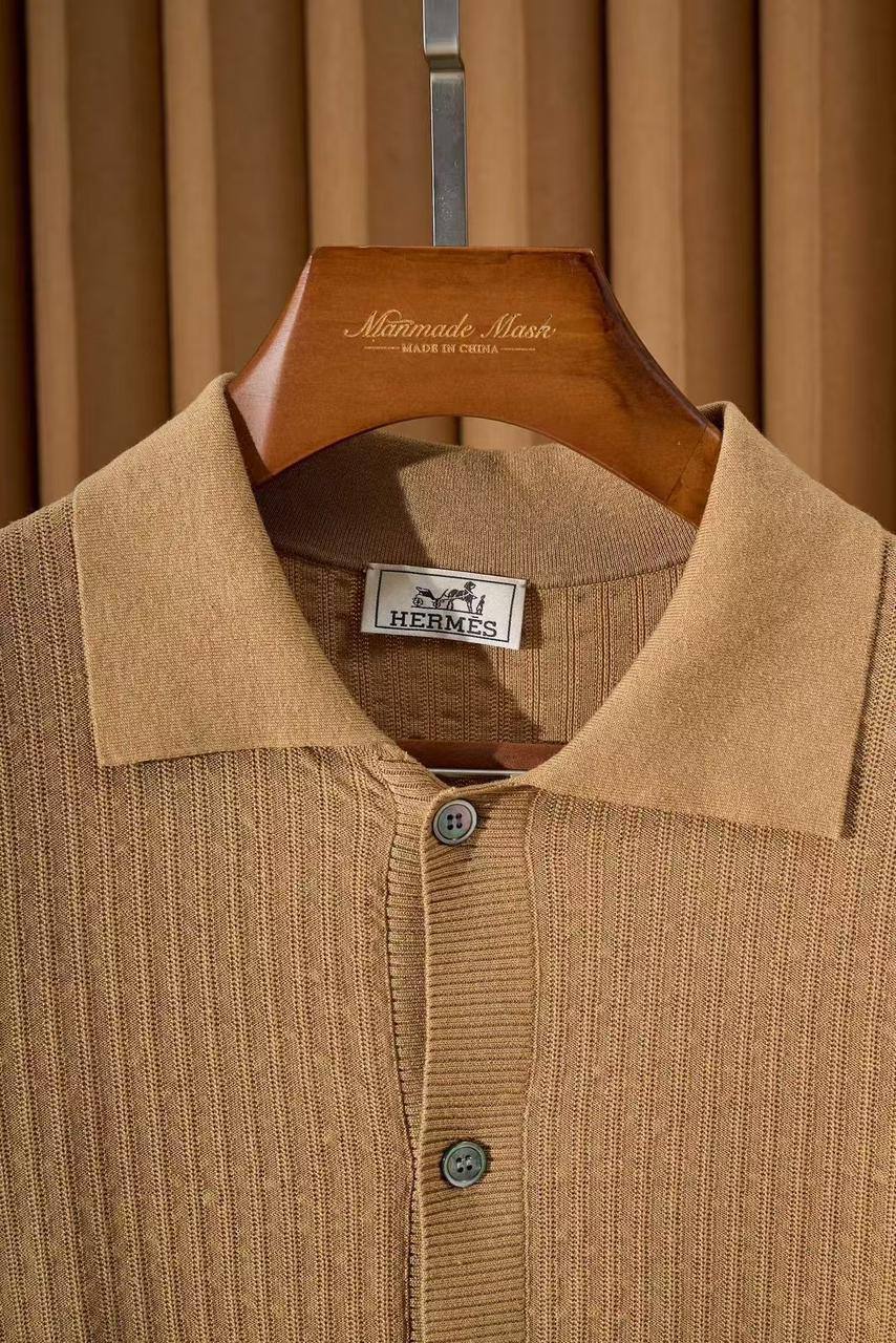 Элегантная мужская Поло Hermes светлокоричневая одежда с высочайшим качеством и стильным дизайном.