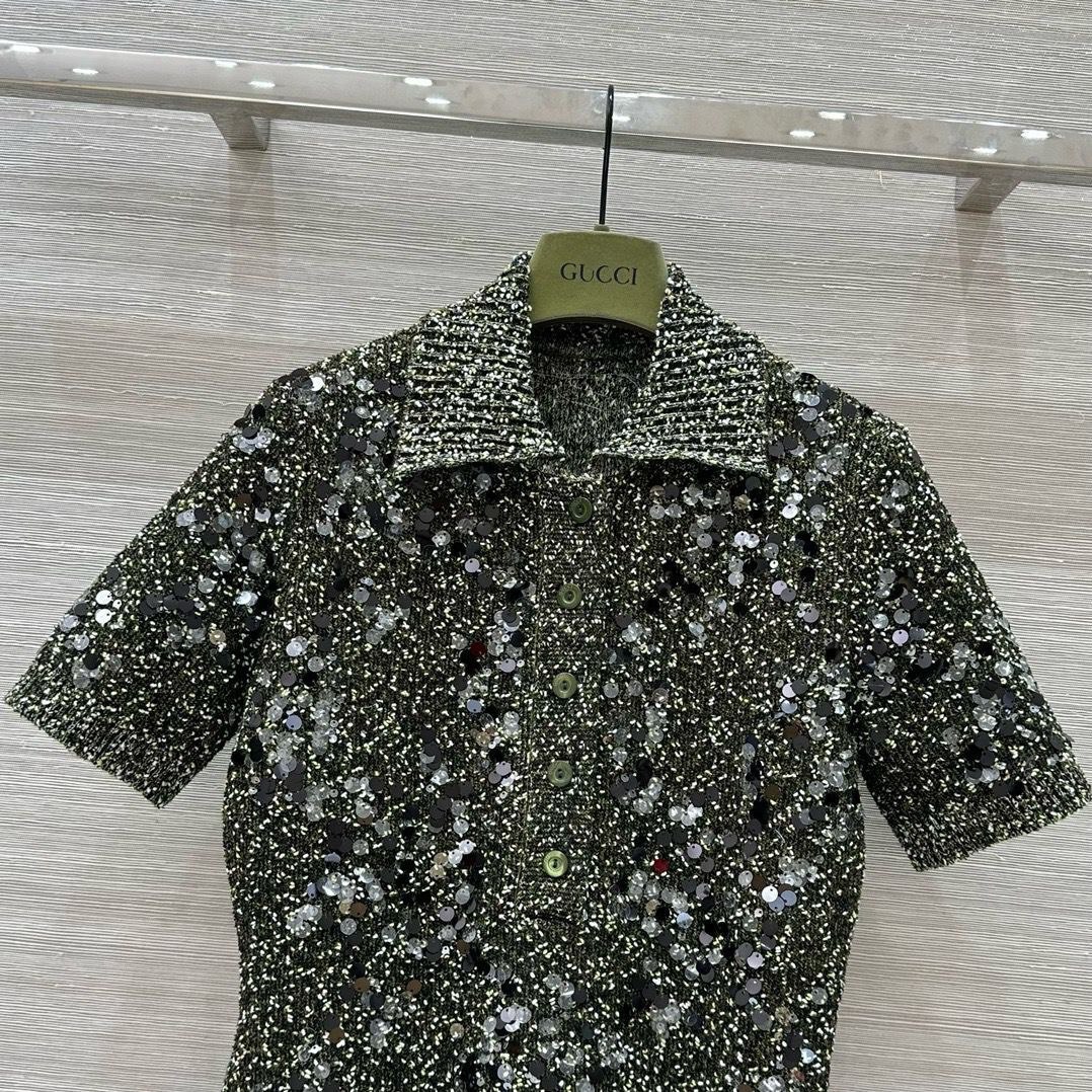 Серая женская Поло-рубашка Gucci, идеальная для формальной встречи или романтического ужина у себя дома.