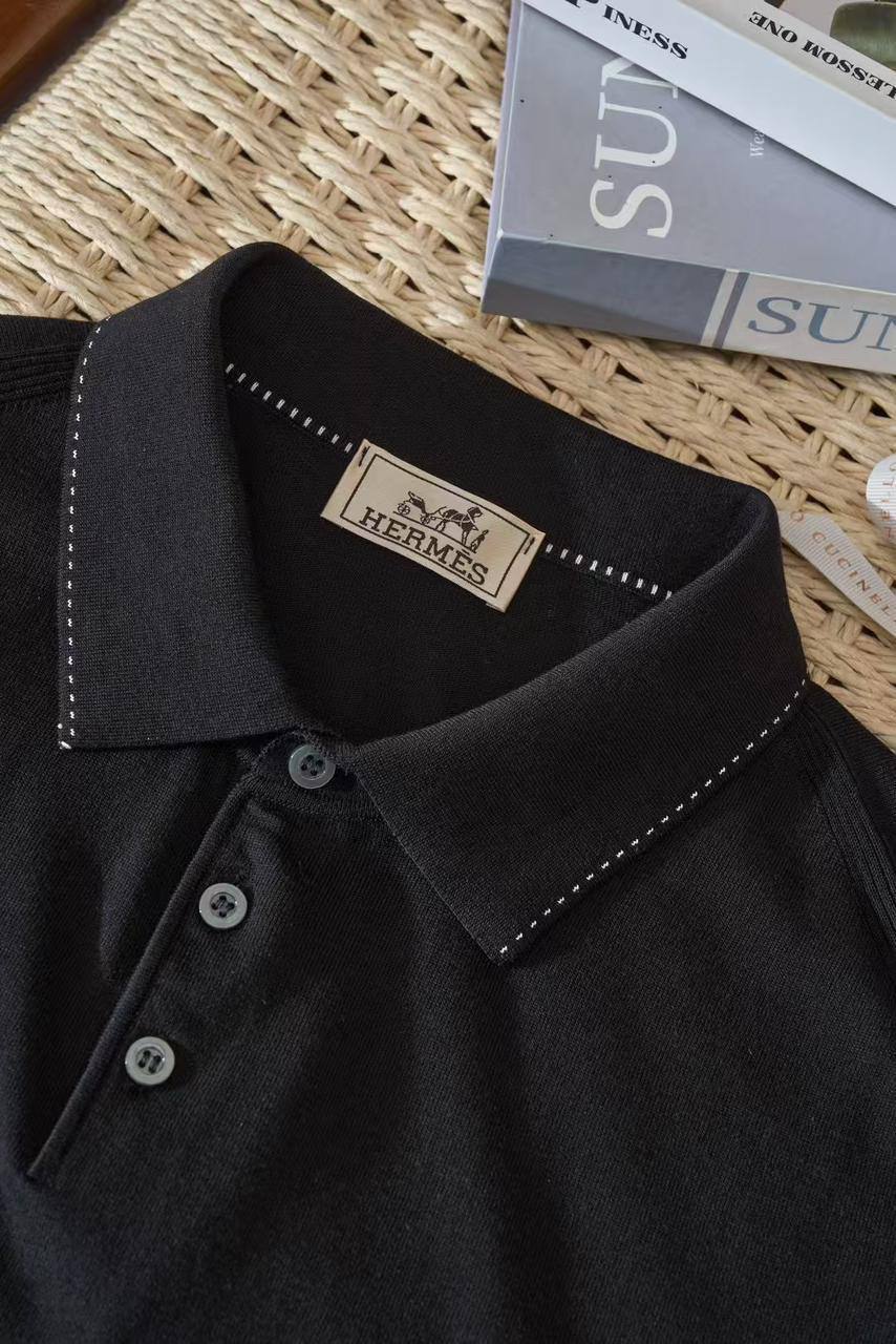 Для мужчины с чувством стиля и любящего роскошь - Мужская Поло Гермес Чёрная, примерьте элегантность прямо в комфорт своей квартиры!