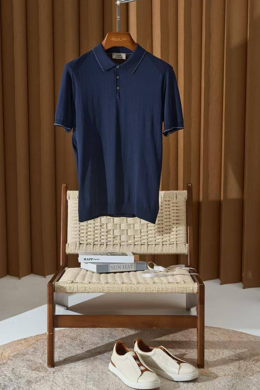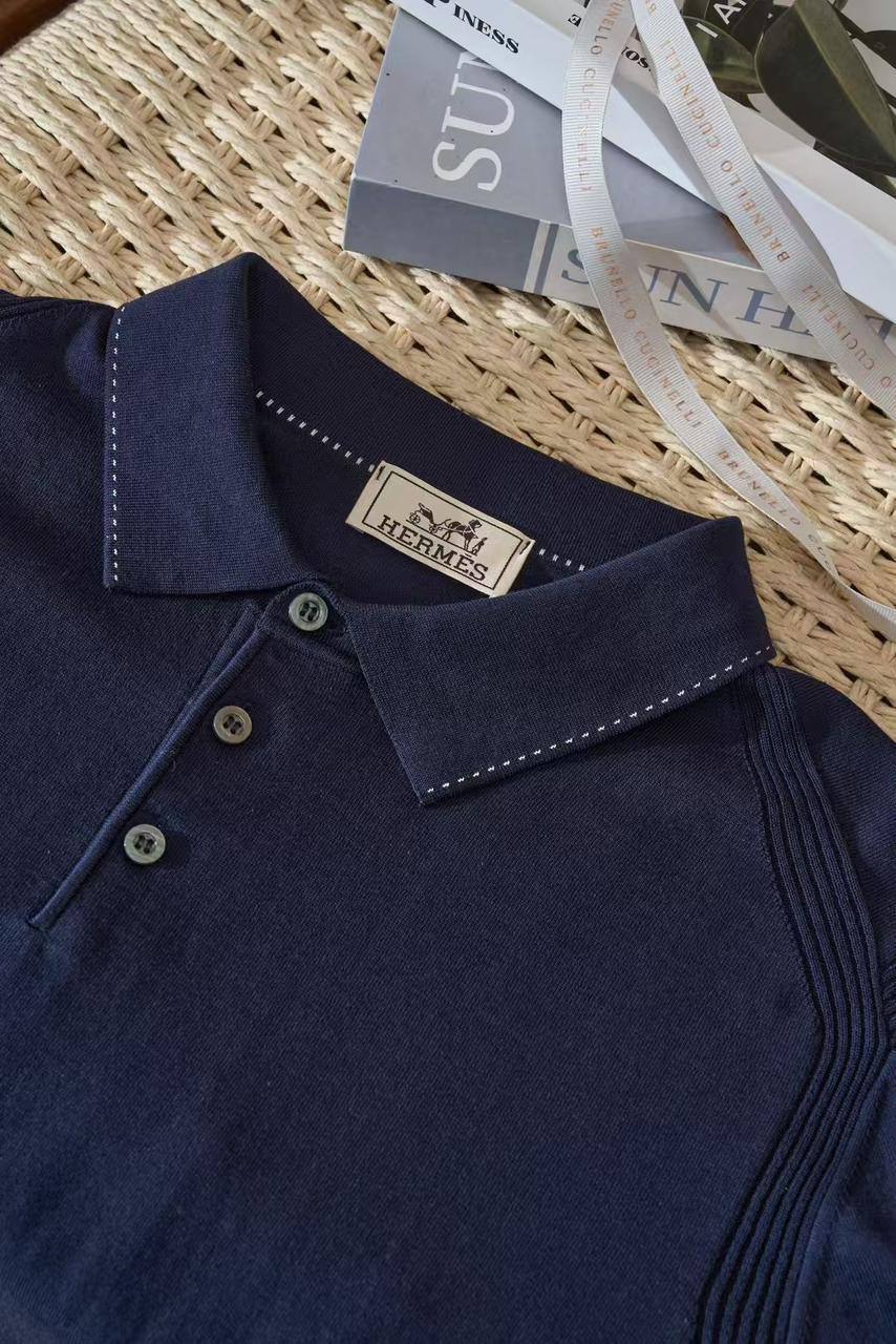 Мужская Поло Hermes Синяя - Элегантная одежда для мужчин, созданная по принципам высокого класса и стиля.