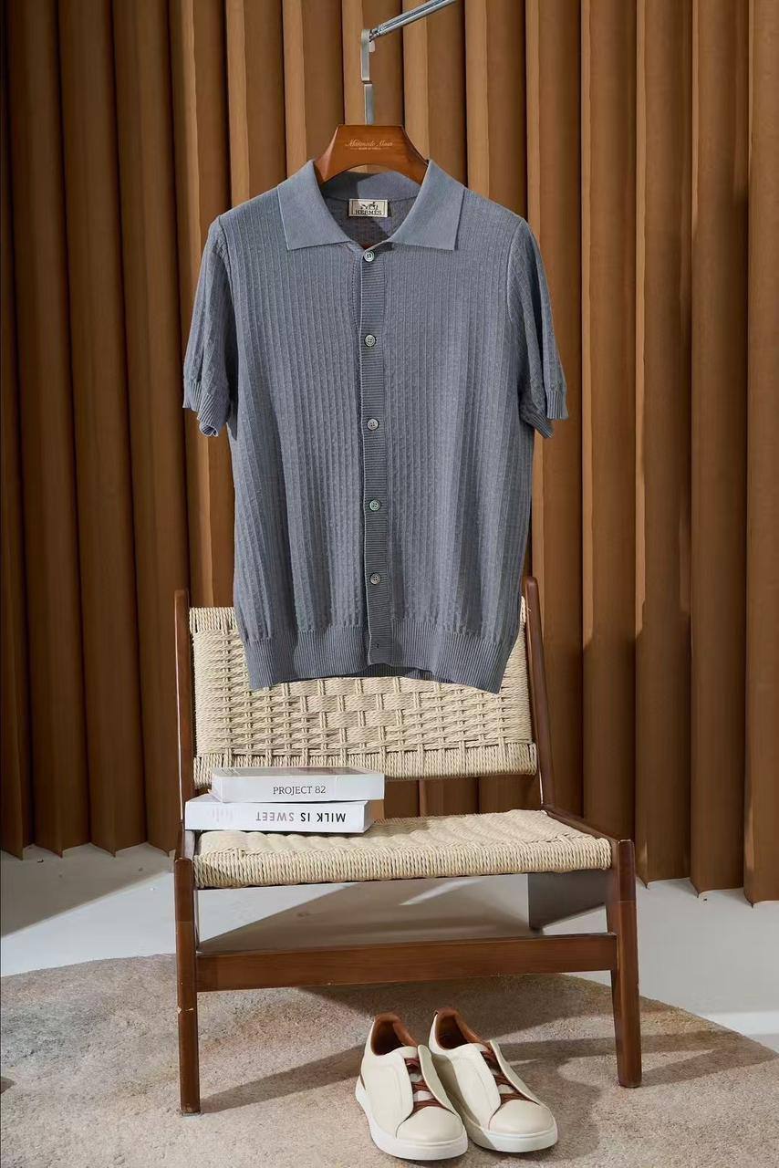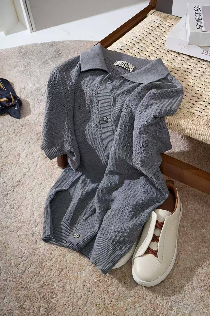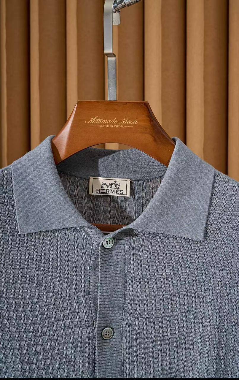 Уникальная мужская Поло от Hermès - серо-голубая классика для избранных