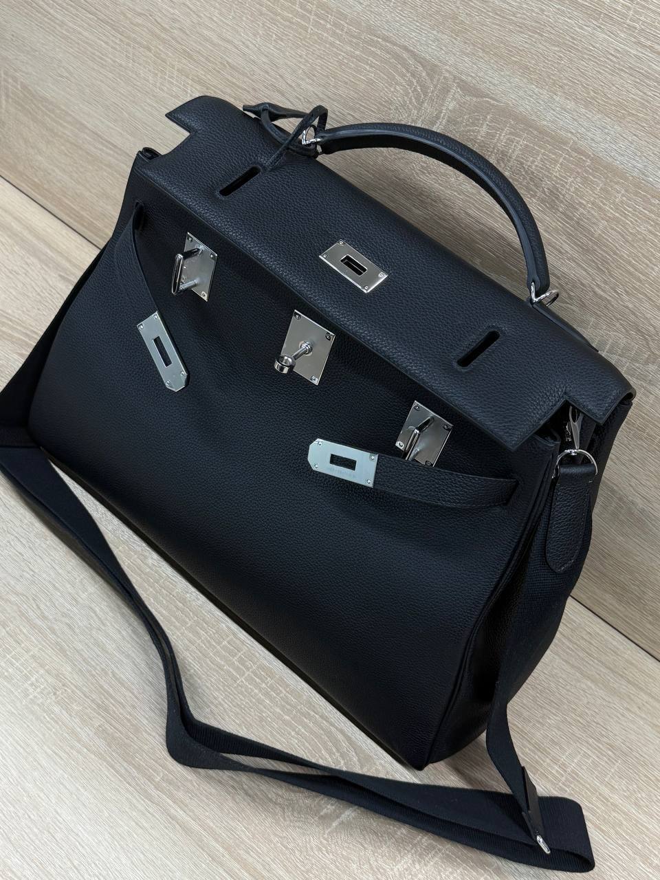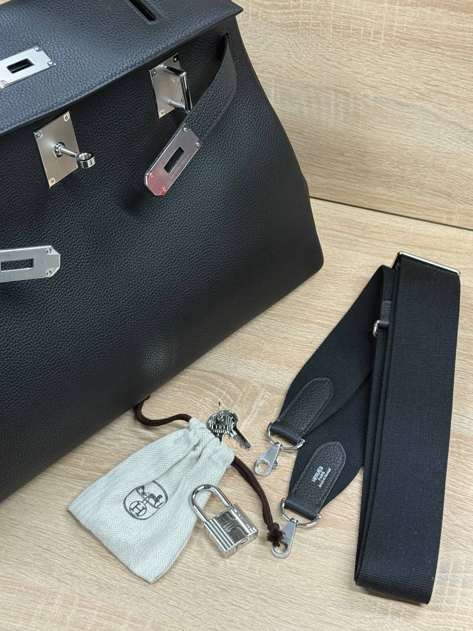 Мужской портфель Гермес - классика мужского стиля, черный цвет, размер 41х27х17 см