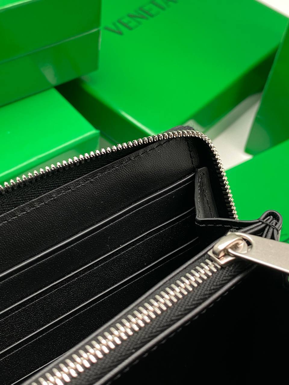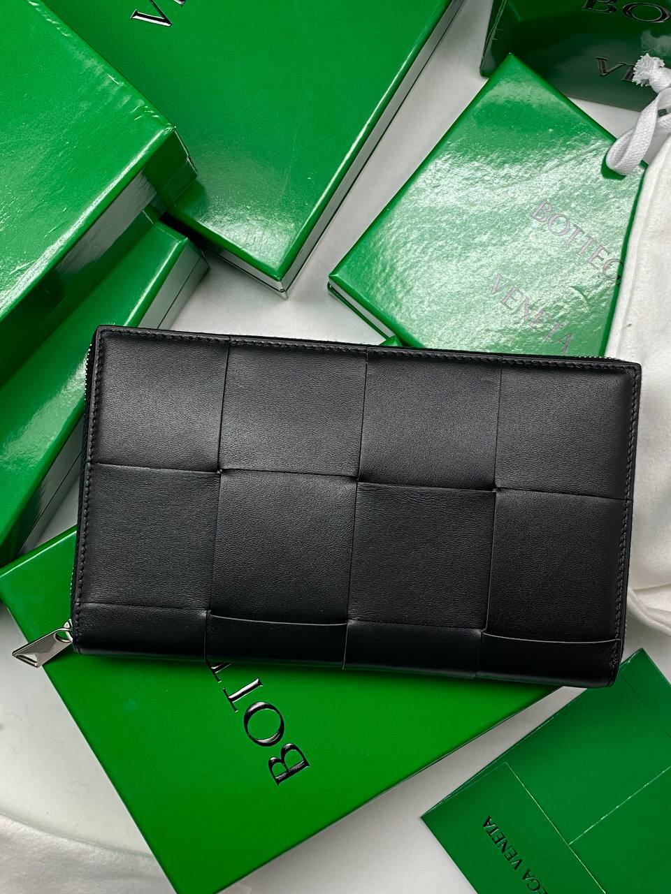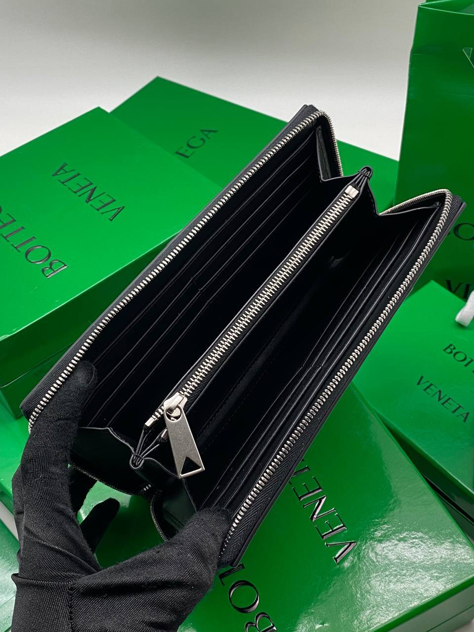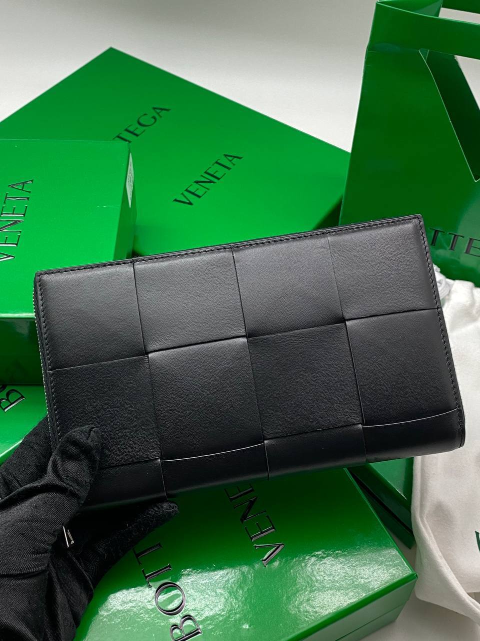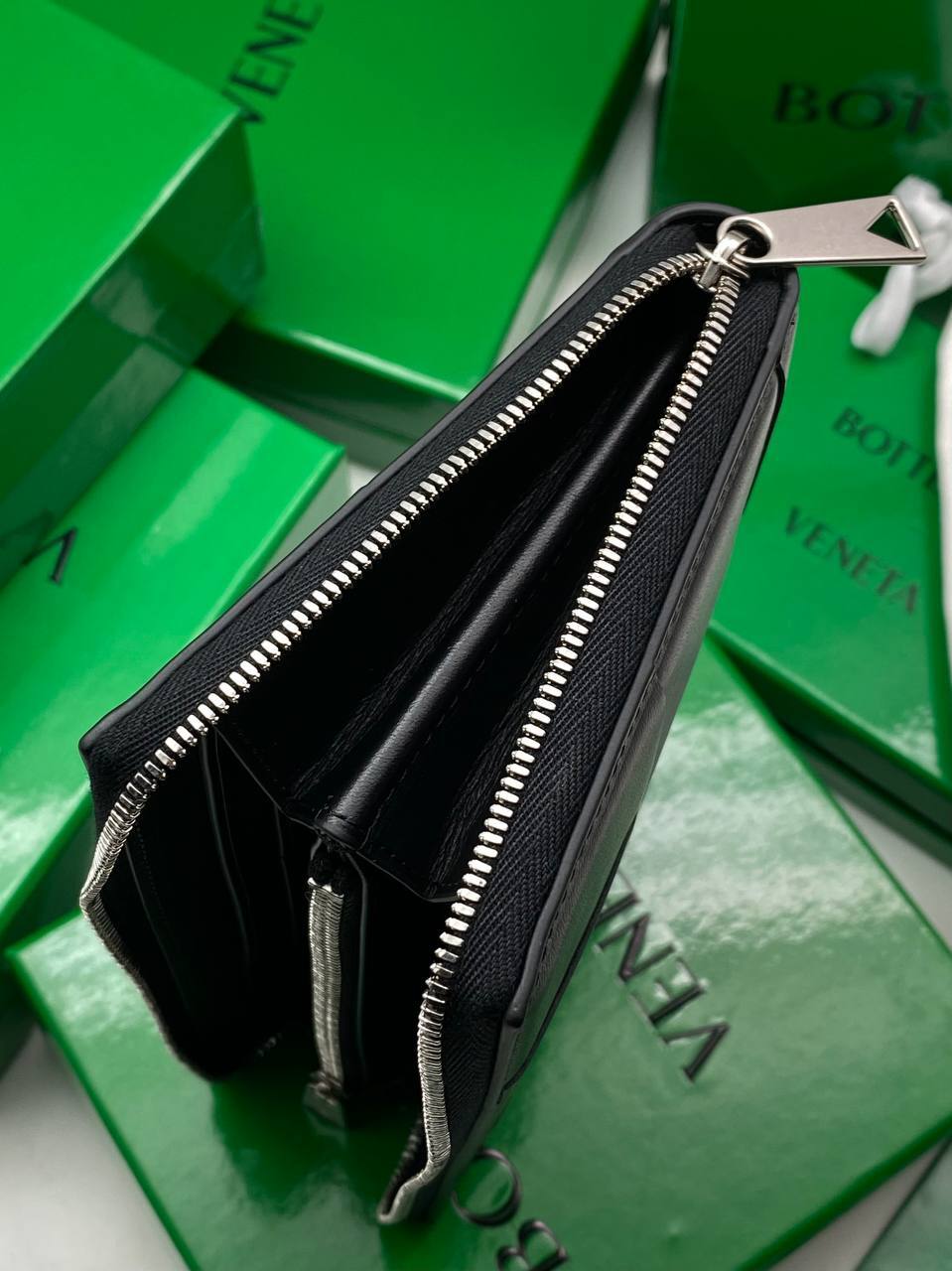 Мужское портмоне Bottega Veneta - элегантное дополнение к классическому стилю, черный кожаный акцент с лаконичным шиком размером 19х11,4х2 см