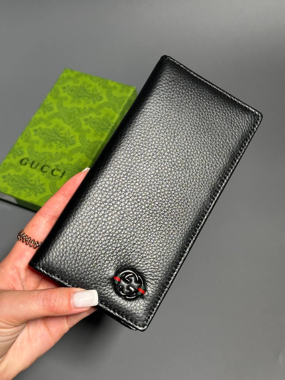 Элегантное чёрное мужское портмоне Gucci - идеальное дополнение для гентльмена, обладающего вкусом и чувством стиля.