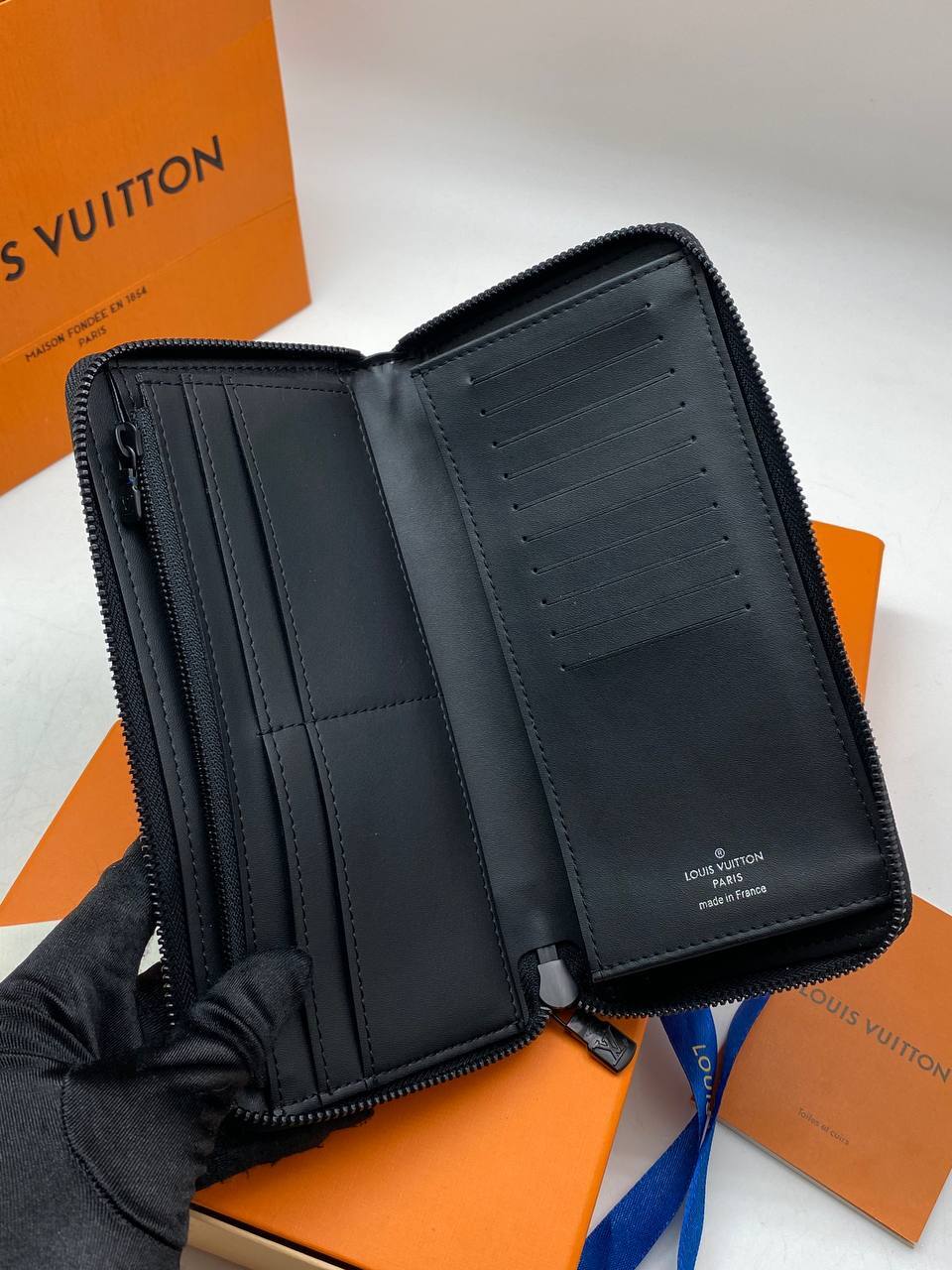 Для настоящего gentlemen - мужское портмоне Louis Vuitton, черный, размеры 21х10х2 см.