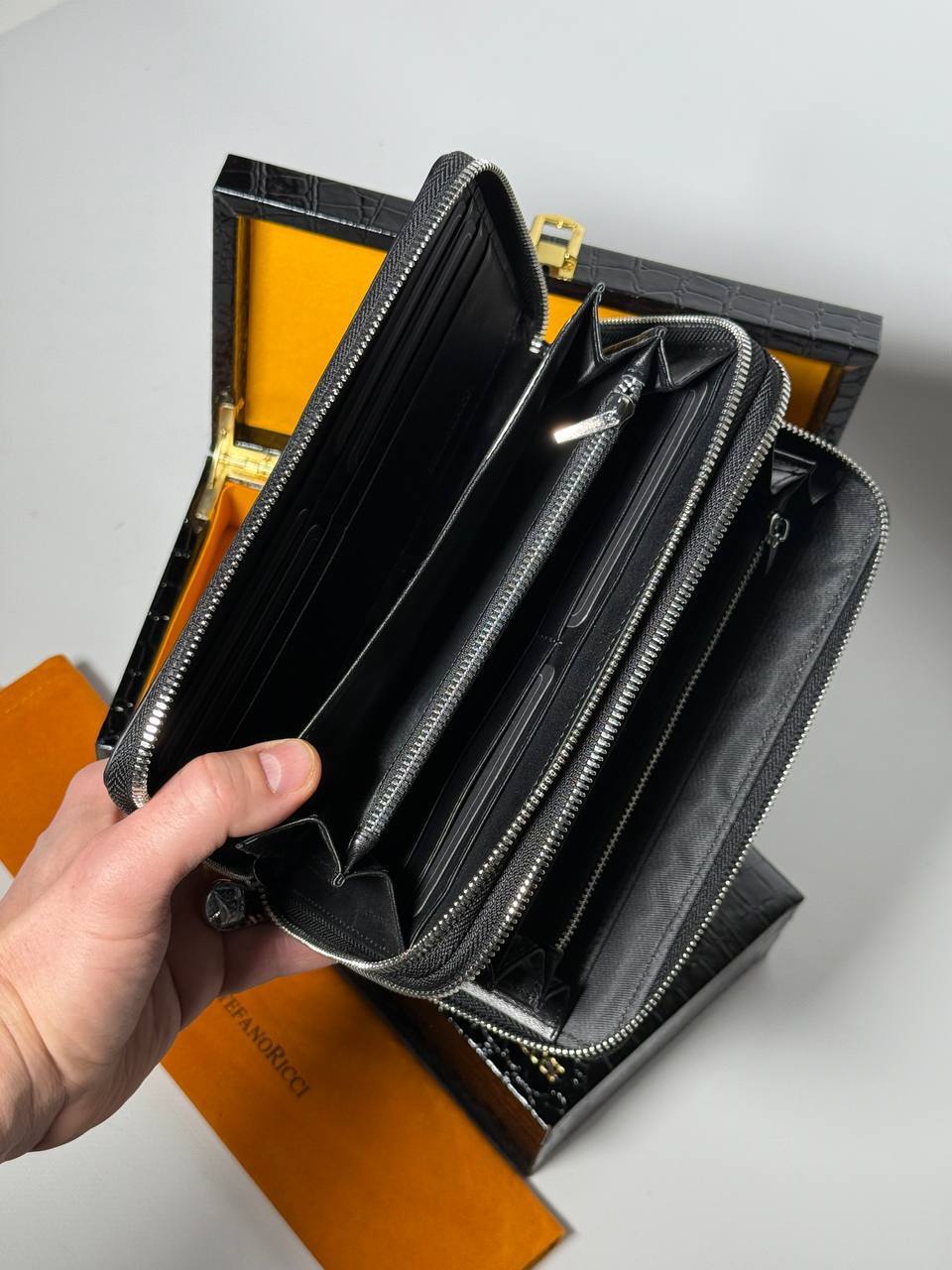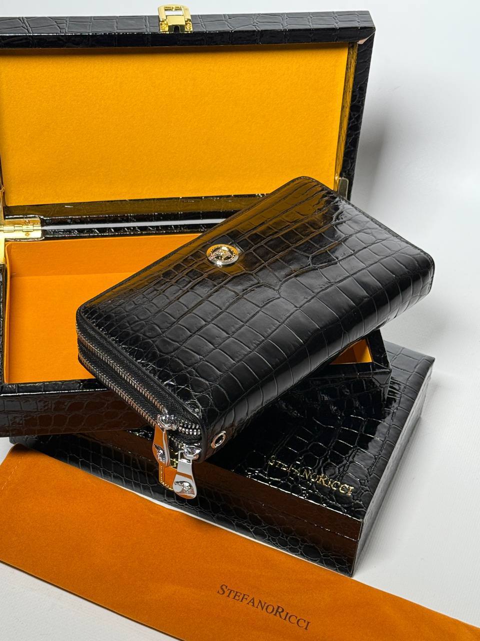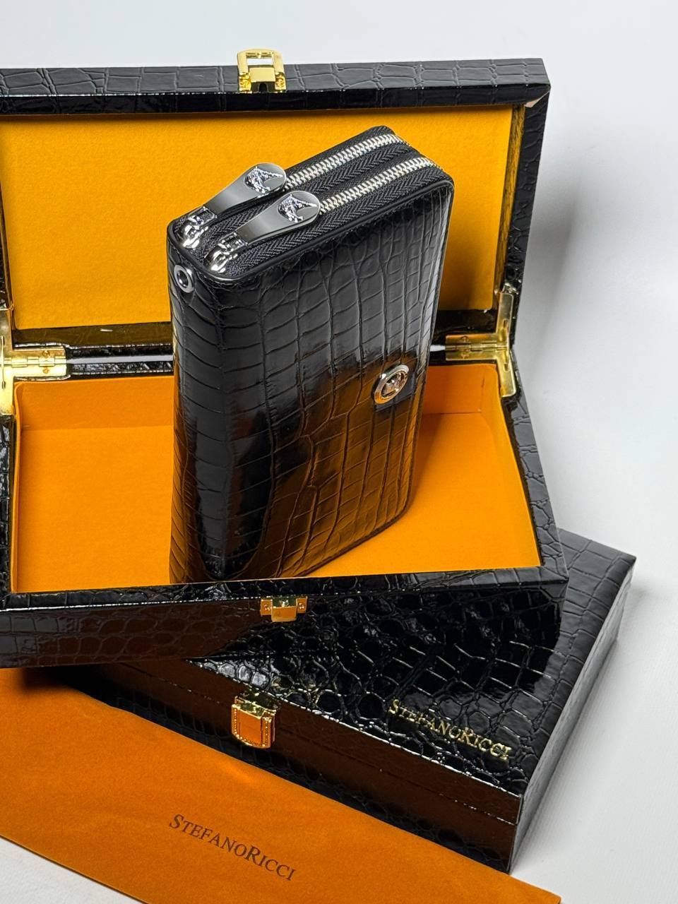 Эксклюзивное мужское портмоне Stefano Ricci из кожи крокодила чёрного цвета, размер 20,5х11,5х4 см - идеальное дополнение к вашему вечернему наряду в стиле Люкс.