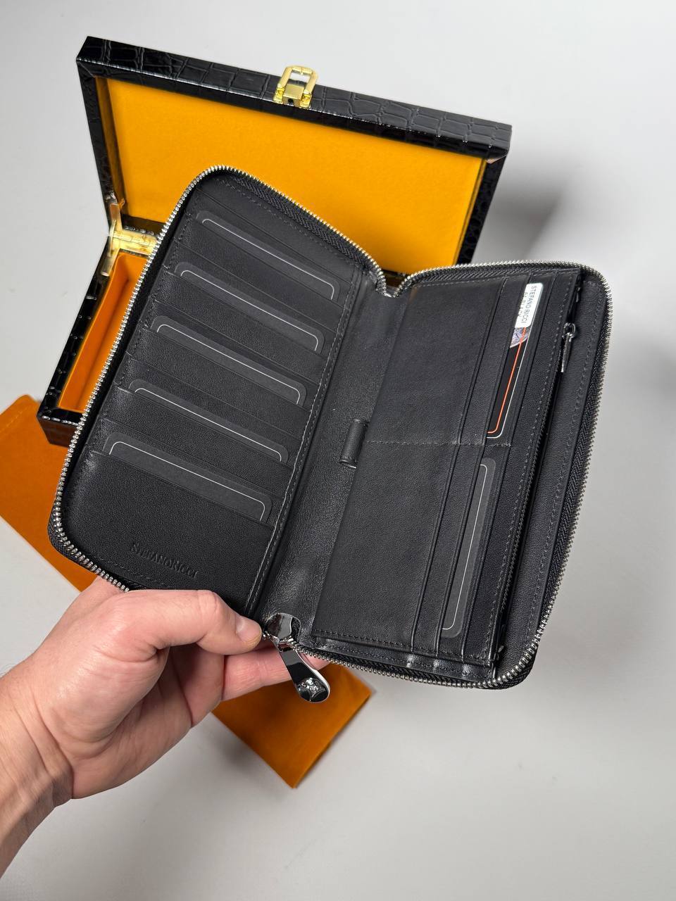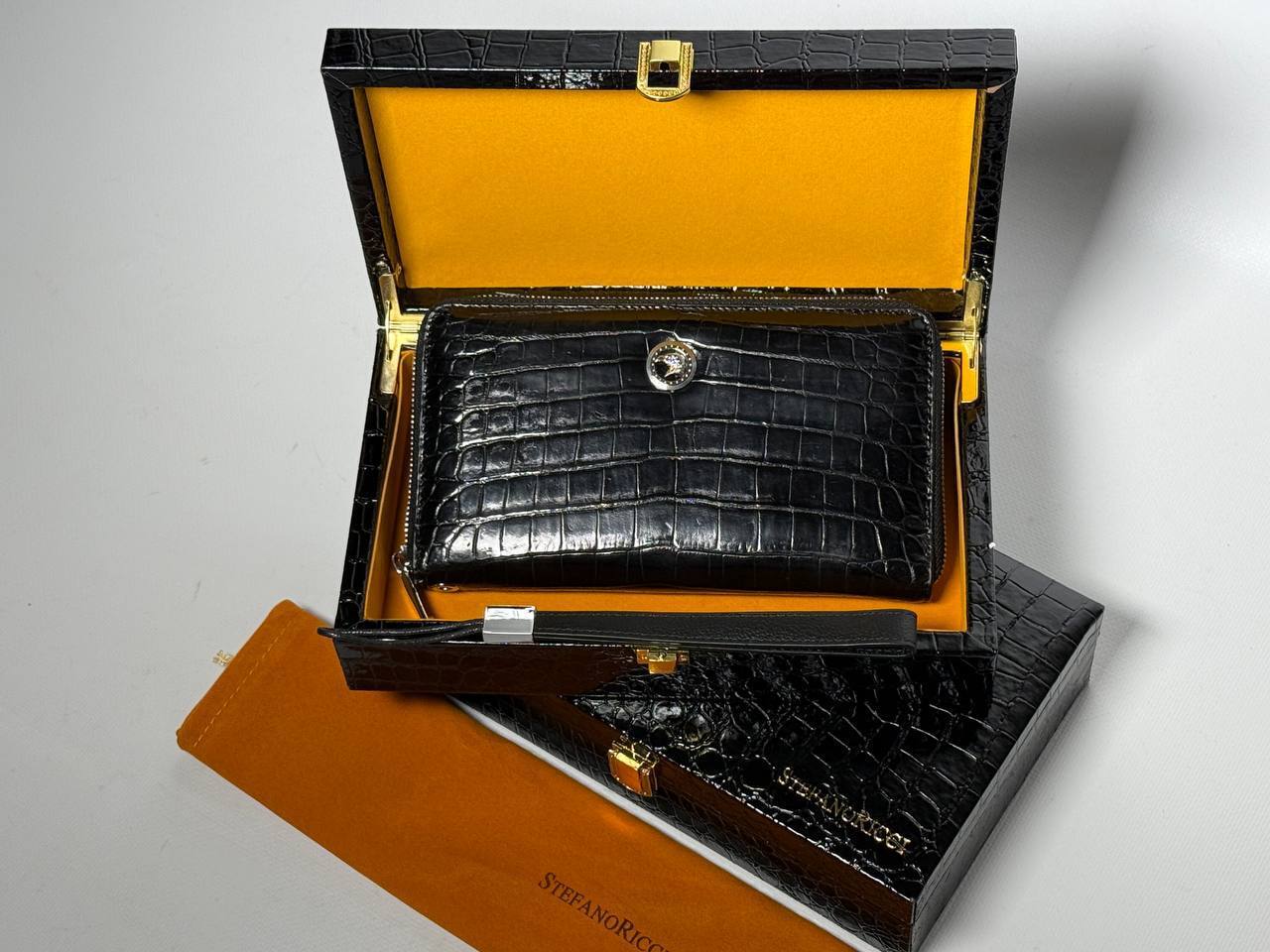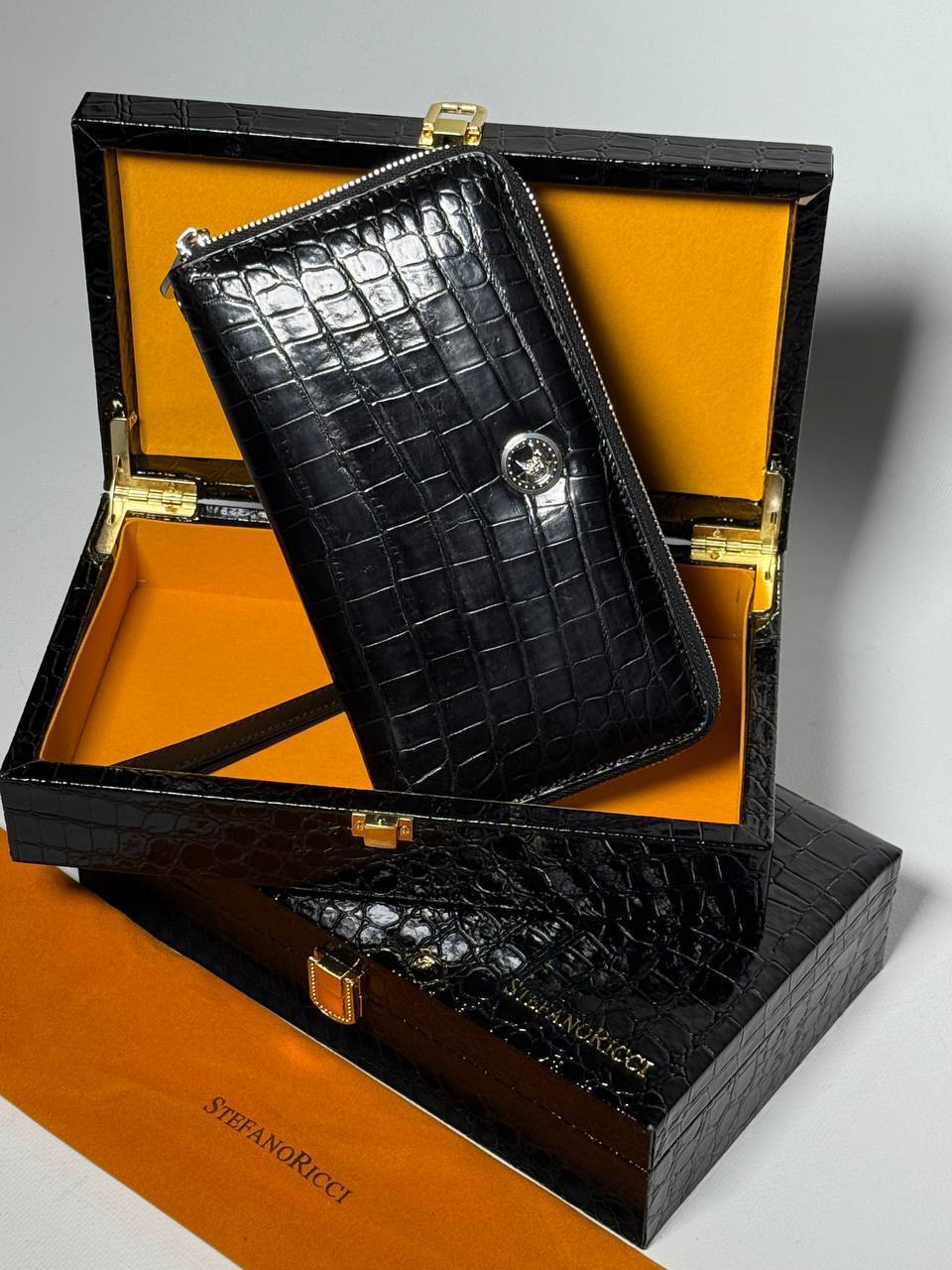Мужское портмоне Stefano Ricci из кожи крокодила чёрное, размер 20,5х11,5х2,5 см - идеальный аксессуар для настоящего гурмана с чувством стиля и любящего премиум-класс одежды.