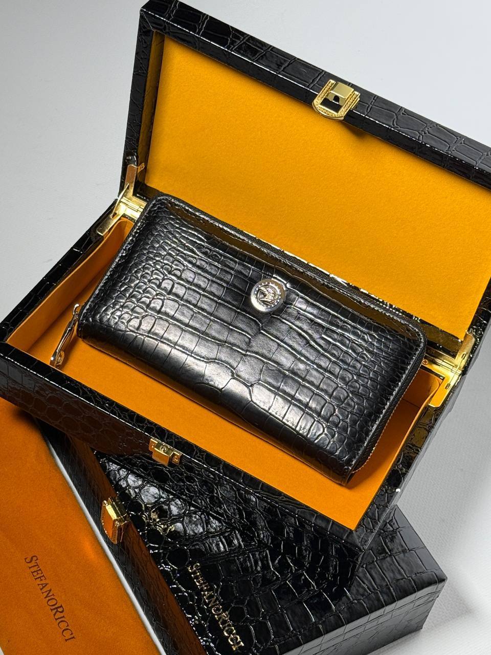 Для мужчины с отличным вкусом - эксклюзивное чёрное крокодилье портмоне Stefano Ricci, размер 20,5х11,5х2,5 см. Премиум-личный аксессуар для настоящего гурмана.