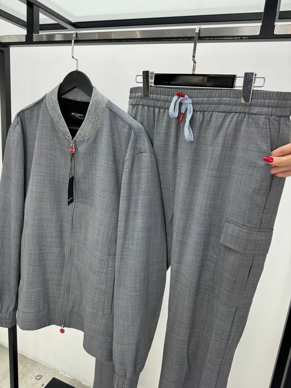 Для мужчин с вкусом и чувством стиля - серый мужской прогулочный костюм Kiton, одежда мечты для тех, кто ценит качество и элеганцию.