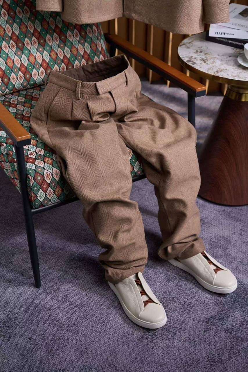 Мужской прогулочный коричневый костюм – воплощение безупречного вкуса. Вельветовый пиджак с воротником-стойкой и двубортным кроем подарит вам ощущение непревзойденного люкса и уверенности в каждом шаге.
