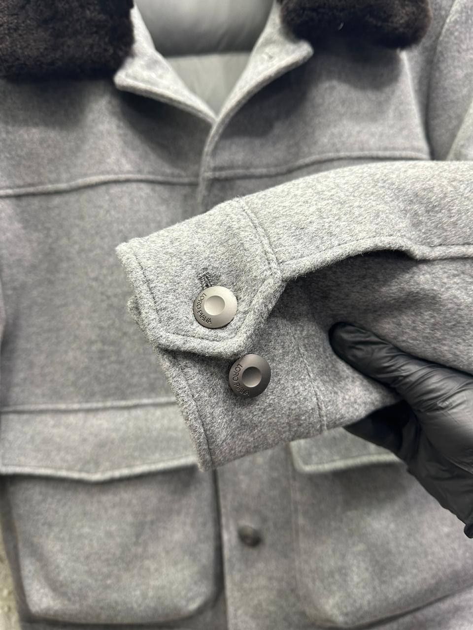 Для мужчины с вкусом и чувством стиля - серая пуховка Loro Piana, элегантная одежда для настоящего гурмана.