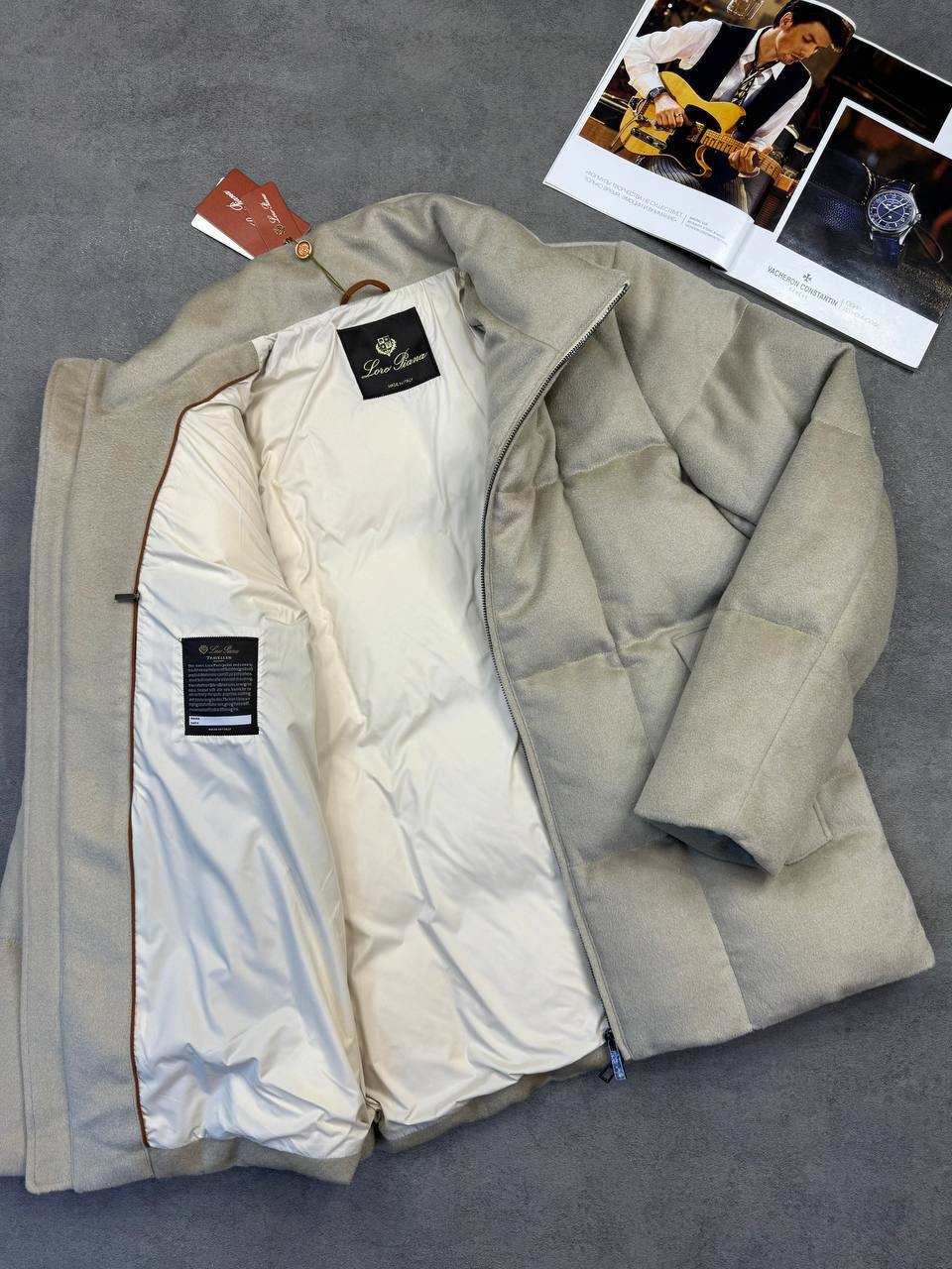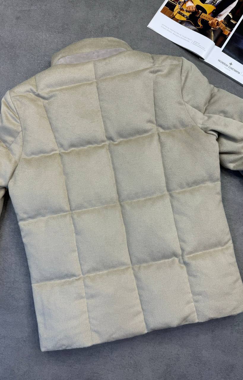 Для мужчины с высшим вкусом - серая пуховка Loro Piana, идеальный выбор для тех, кто ценит лаконичный шик и премиум-класс одежды.
