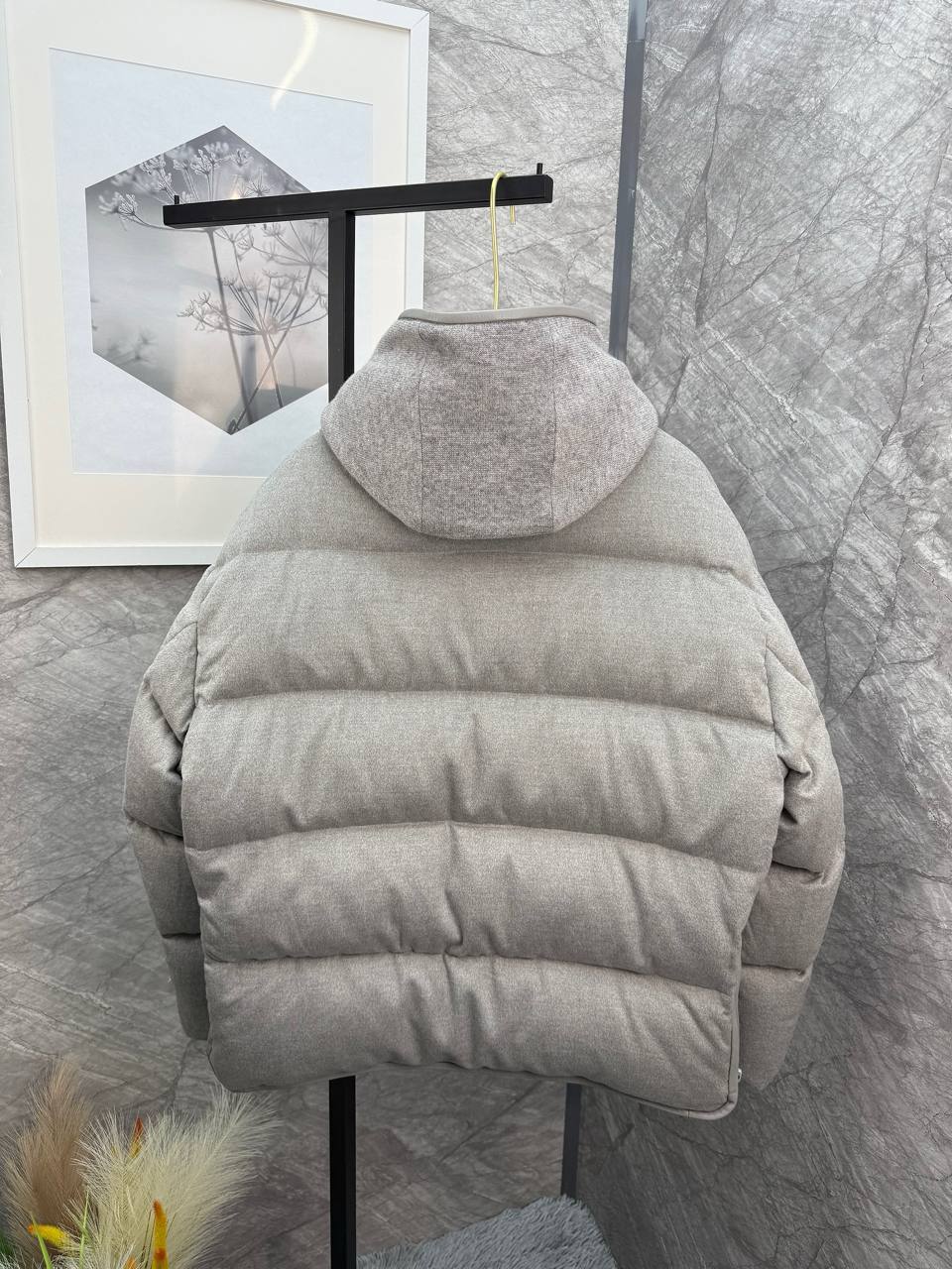 Мужской пуховик Bottega Veneta – воплощение премиального комфорта и стиля. Геометричный принт из плотного ворса и молния с обеих сторон создают идеальный баланс между теплом и актуальным видом.