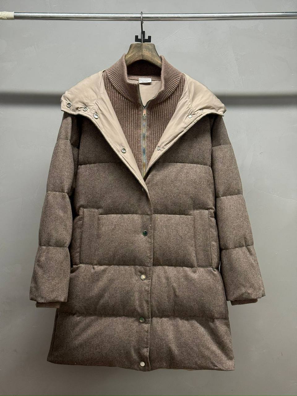 Brunello Cucinelli: Женский пуховик Серый – воплощение роскоши и комфорта. Качество из Италии, элегантный силуэт до щиколоток и премиальный ворс. Идеальный выбор для тех, кто ценит безупречный стиль.