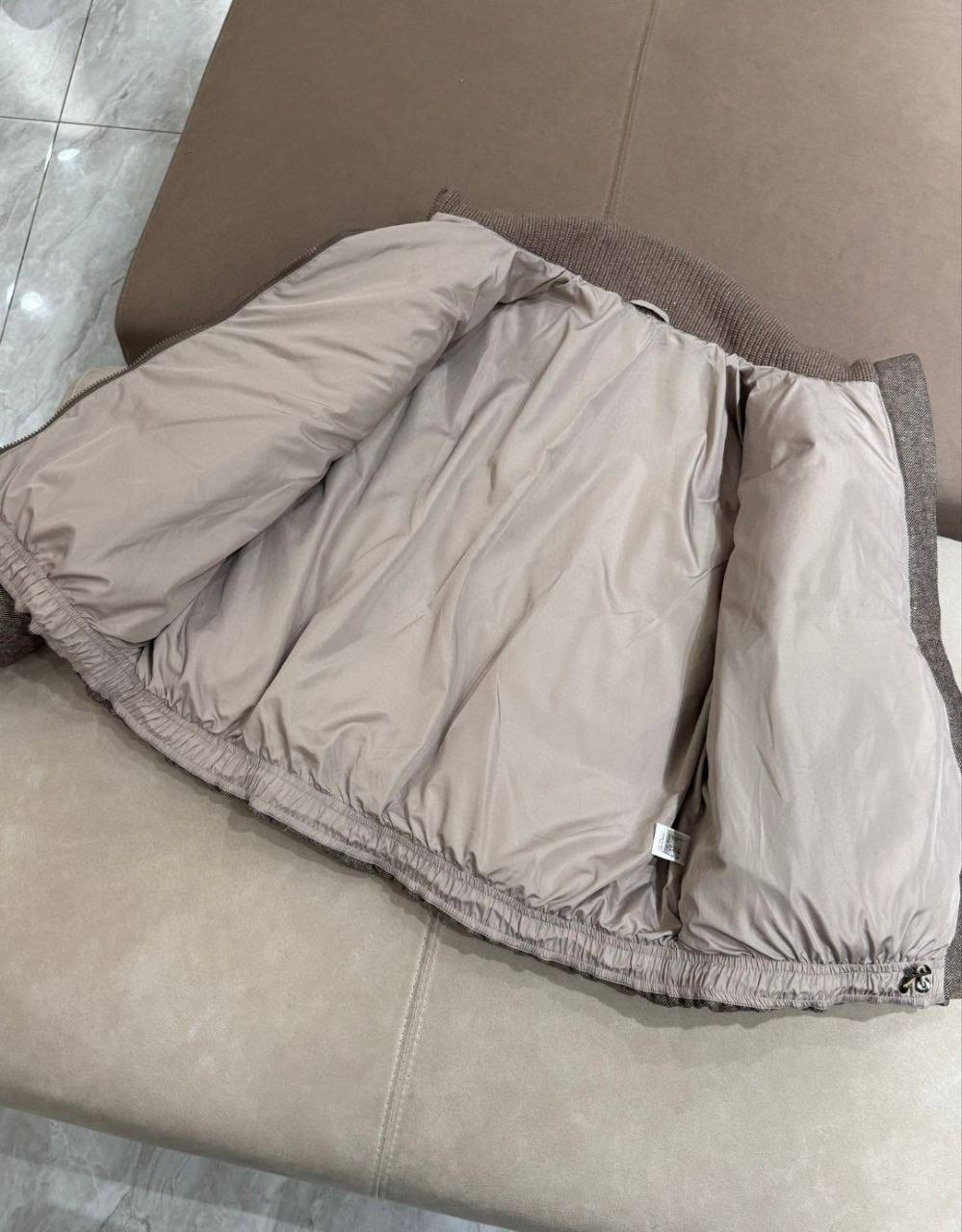 Коричневый женский пуховик Brunello Cucinelli - элегантный выбор для настоящих модниц, сочетает в себе роскошь и стиль.