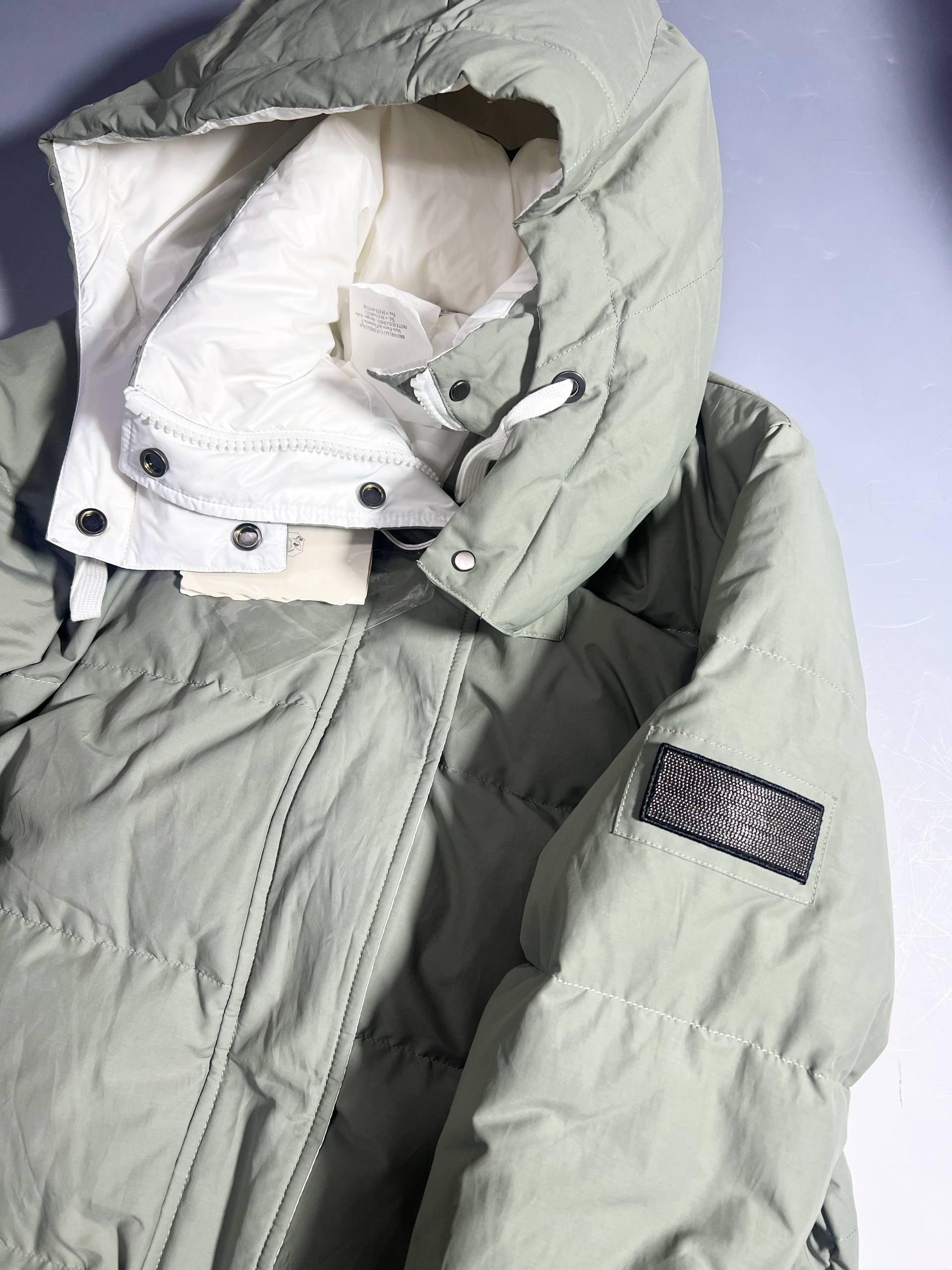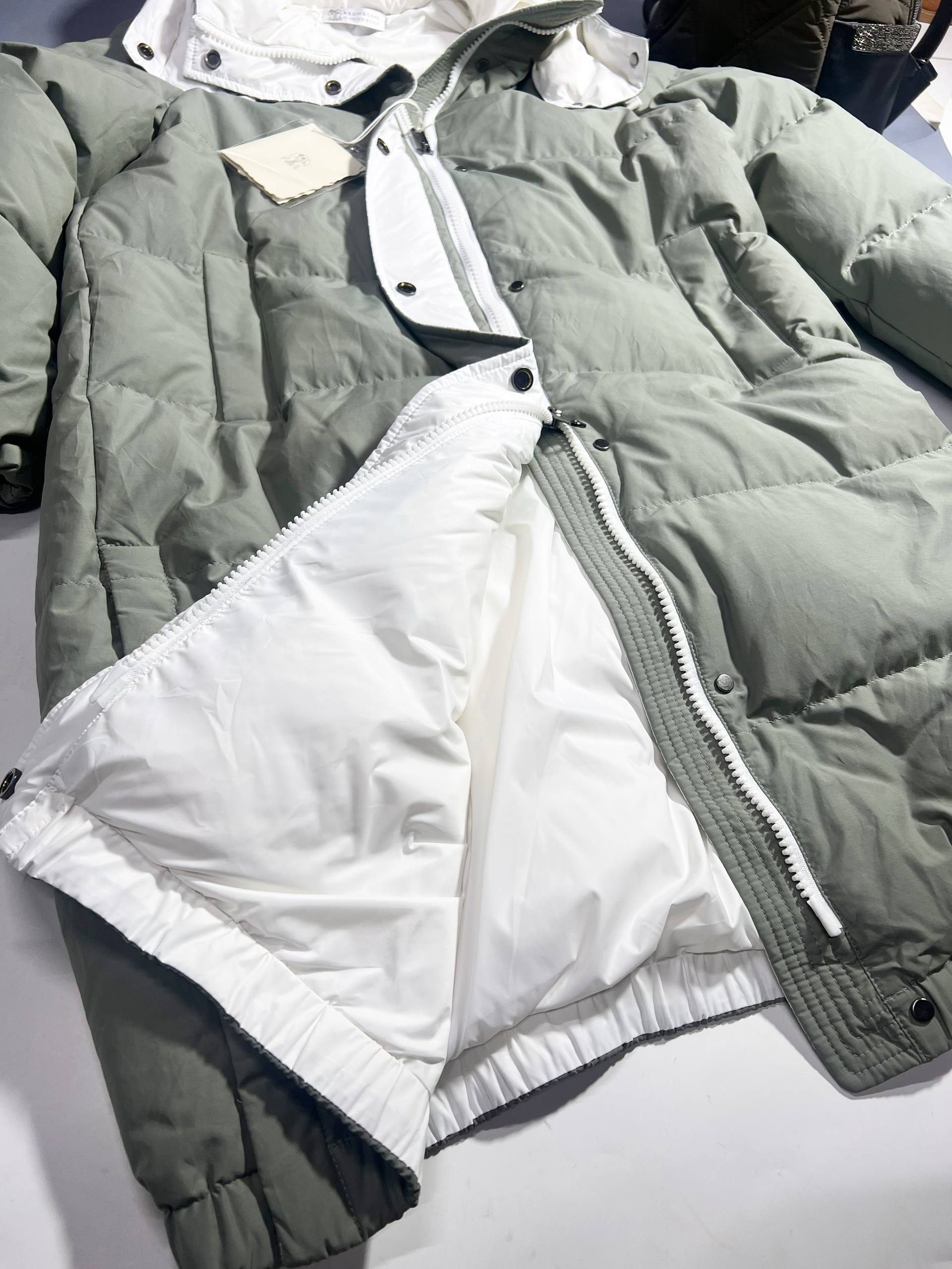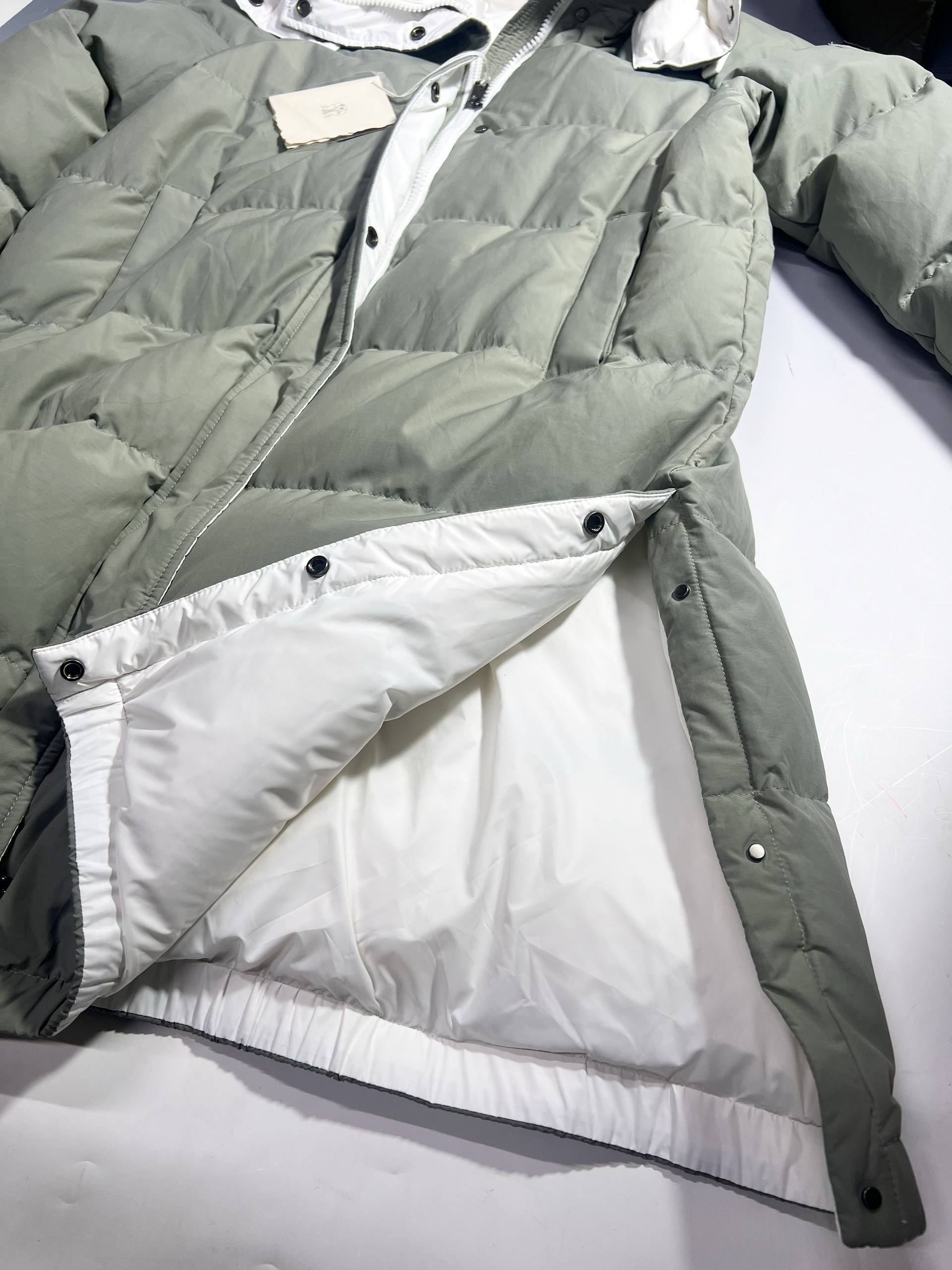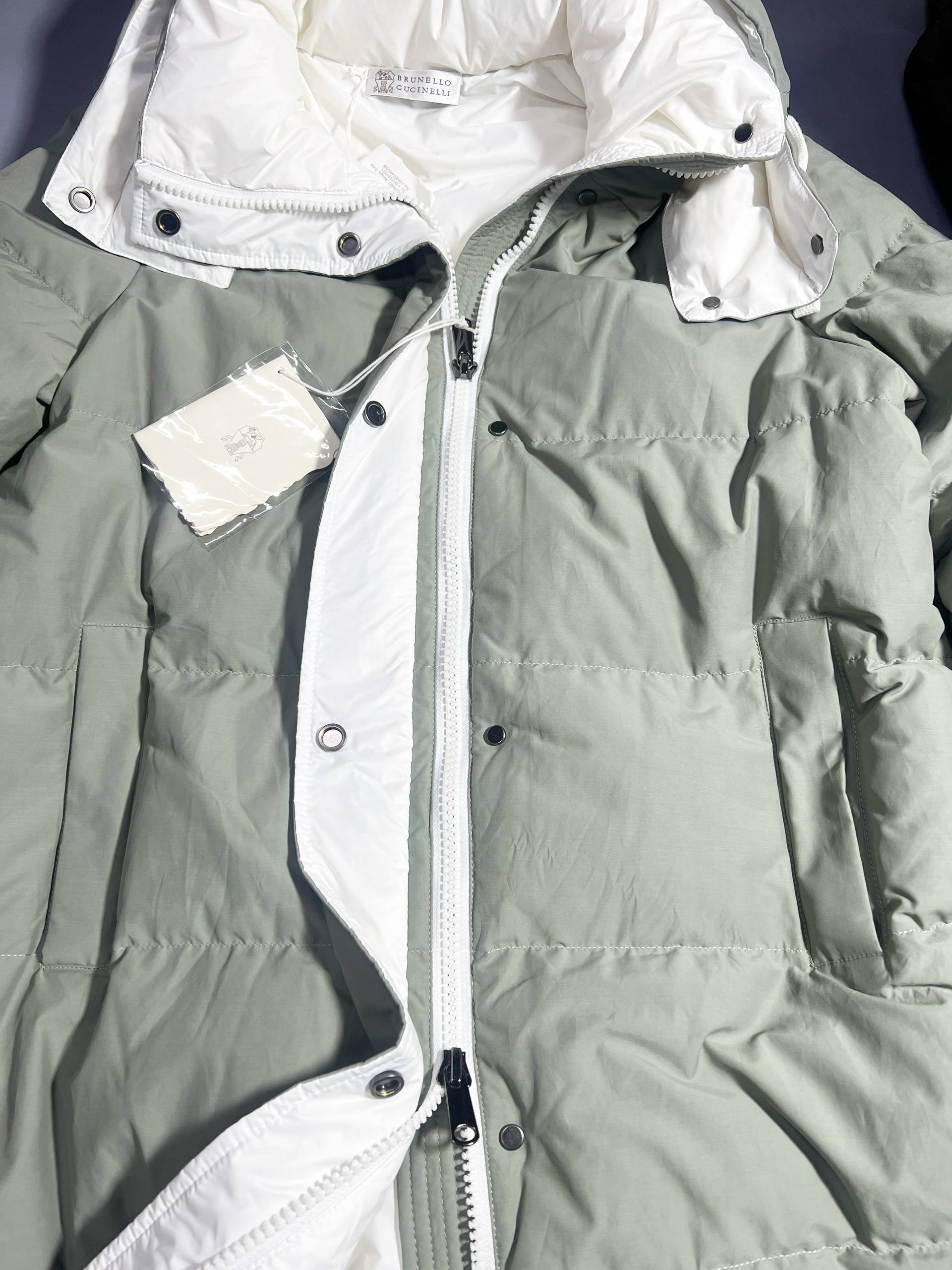 Мужской пуховик Brunello Cucinelli Серый – воплощение премиум-класса. Стильный прямой крой, качественный утеплитель и воротник-стойка для максимального комфорта и безупречного стиля.