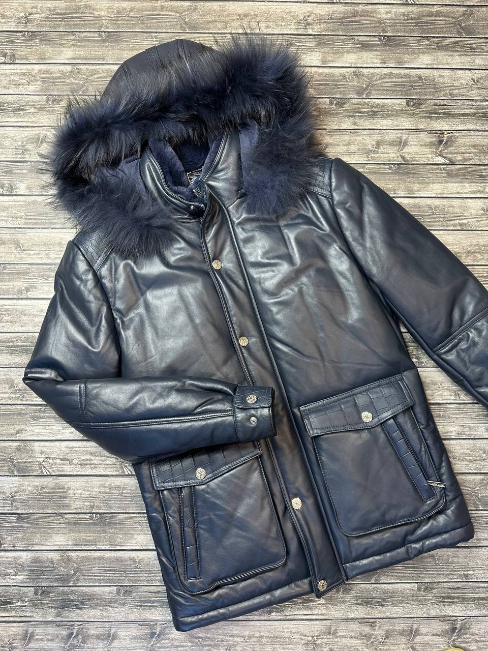 Для мужчины с отличным вкусом - пуховик Stefano Ricci, вставка крокодильской кожи, синий цвет, исключительная мода.