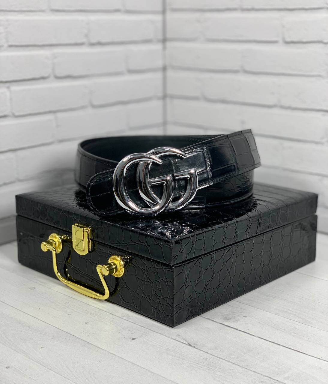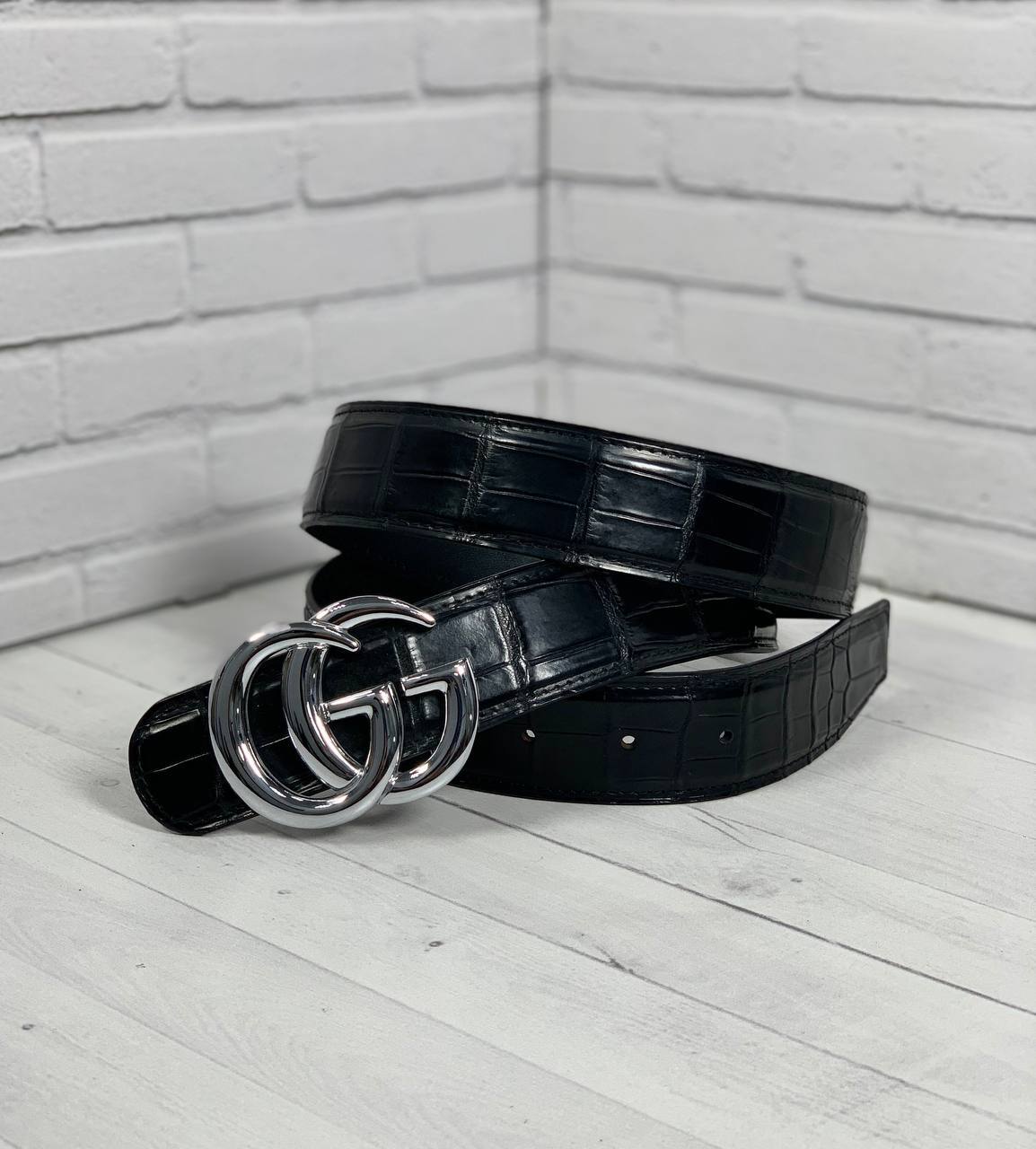 Мужской ремень Gucci из кожи крокодила черный - стиль и элегантность для настоящего джентльмена