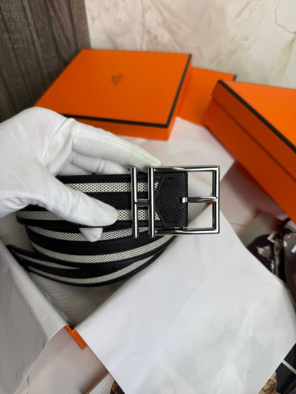 Мужской ремень Hermes – воплощение премиум-качества. Классическая черно-белая полоса, роскошная кожа с эффектом сетки и фирменная пряжка Hermes. Подчеркните свой безупречный вкус с этим премиум аксессуаром.