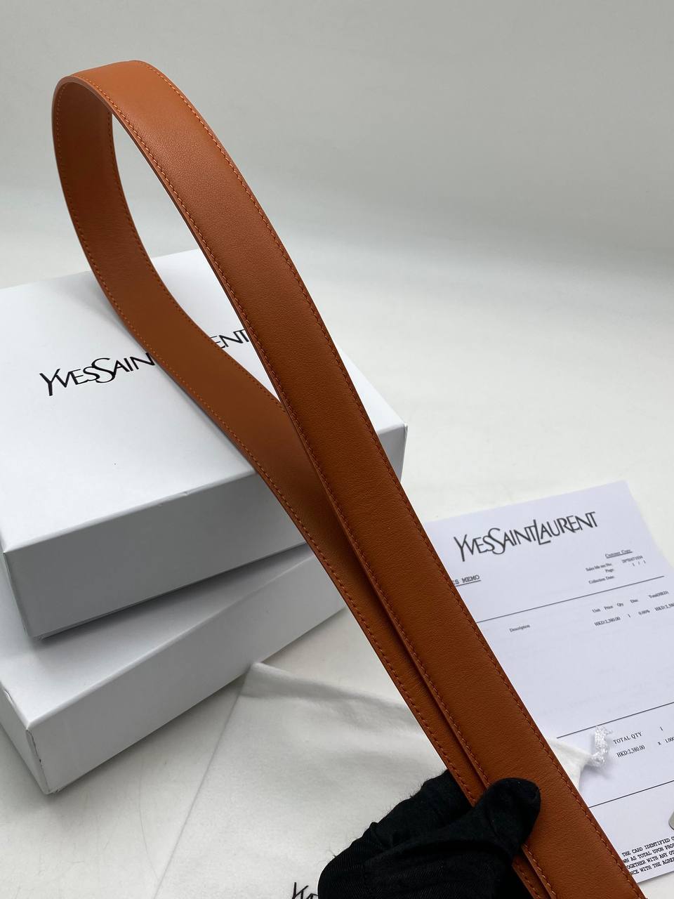 Коричневый женский ремень Yves Saint Laurent, часть итальянской коллекции премиальной одежды для женщин.
