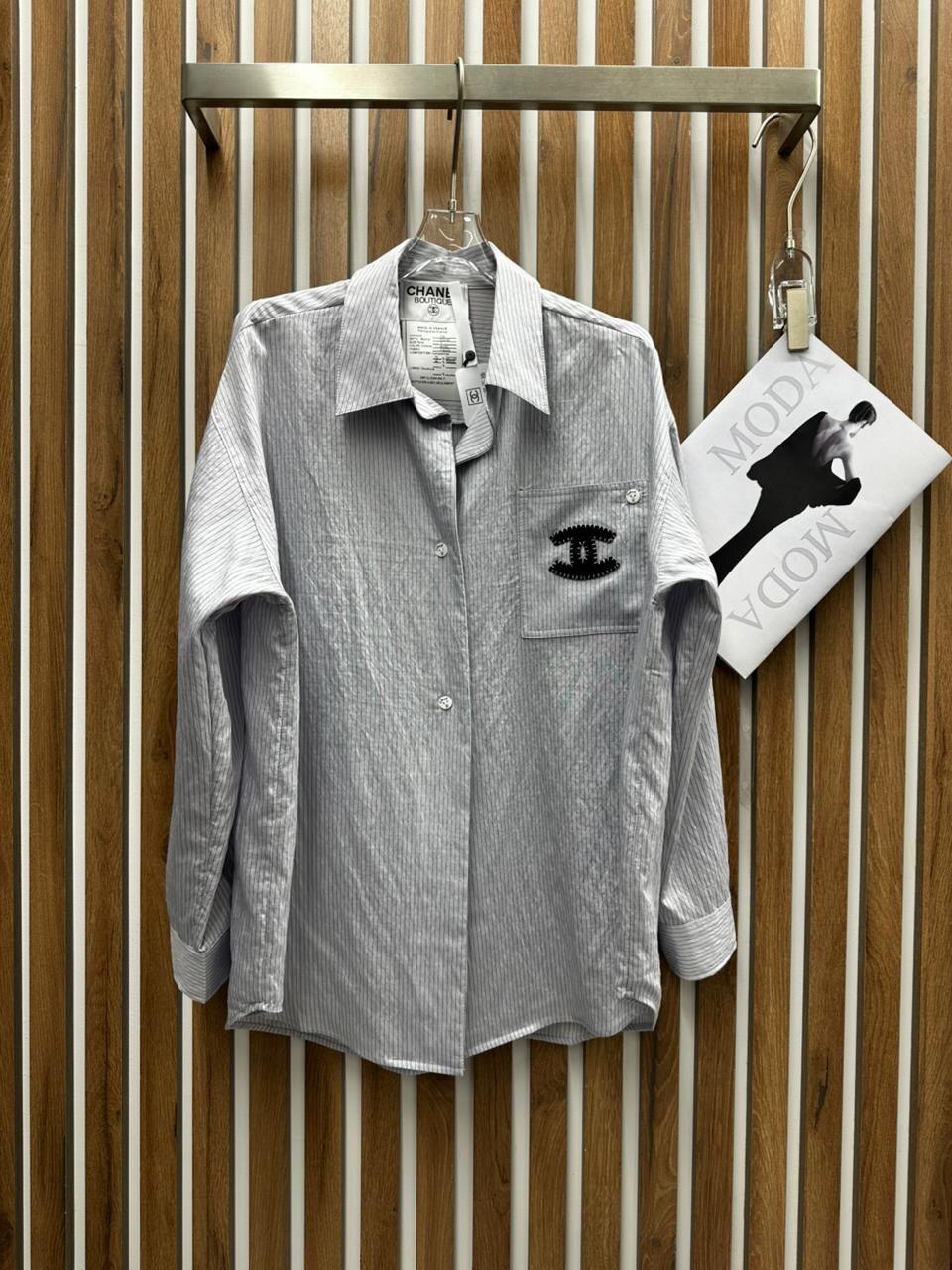 Женская рубашка CHANEL серая - стильная добавка к вашему гардеробу люкс-класса для женщин с чувством модного вкуса и любви к элегантности.
